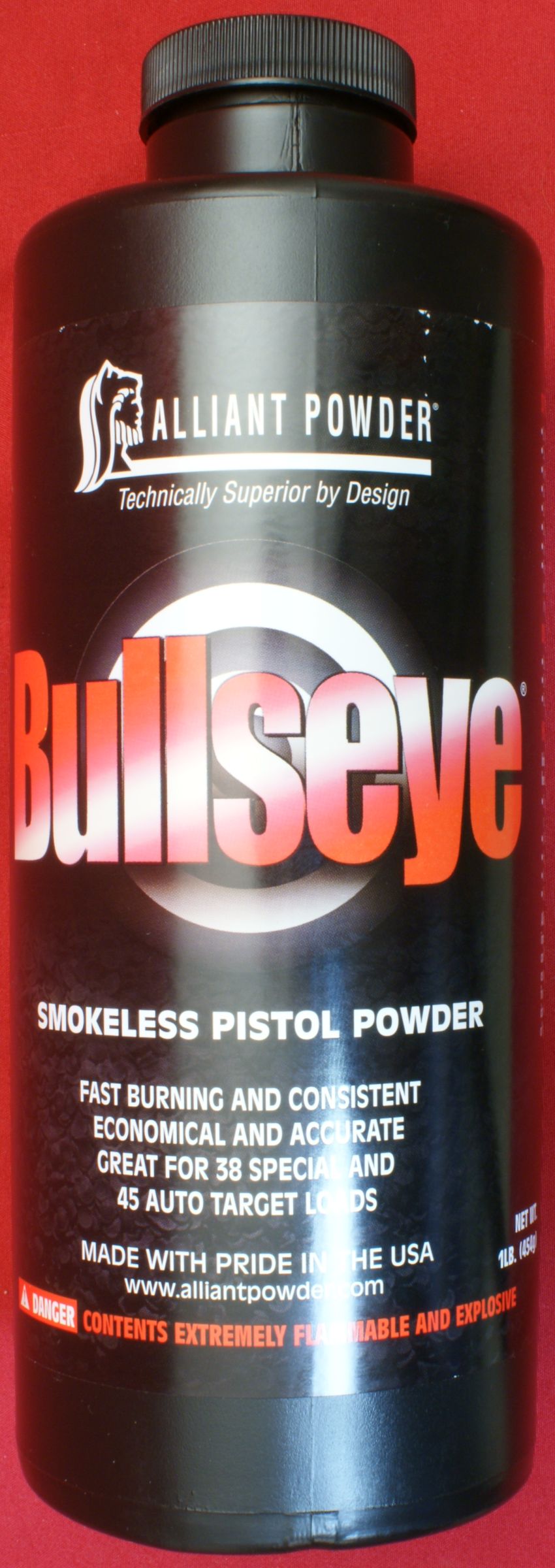 Alliant Powder Bullseye® Data shown in colored italics was taken from the manufacture's website. Key Features Billions of rounds have been loaded with Bullseye since it was introduced in 1913. Fast burning and consistent. Economical and accurate. America's best known pistol powder. Unsurpassed for .45 ACP target loads.