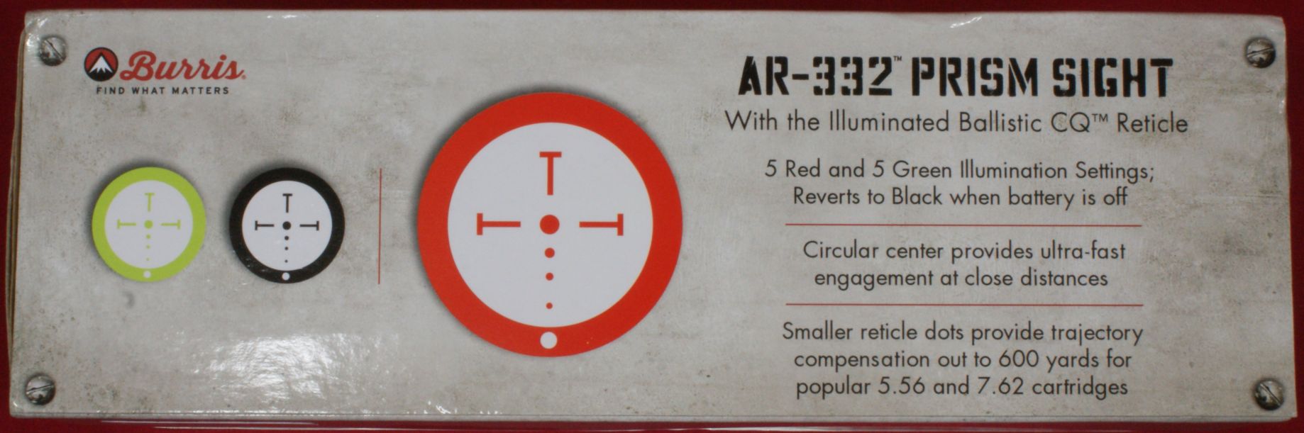 Burris AR-332™ Prism Sight Review At the end of last year, Burris was offering a promotion whereby purchasing an AR-332 or AR-536 prism sight would allow you to submit a rebate form to get a free FastFire 3 red dot reflex sight. I immediately started checking on prices and was able to find the AR-332 for a bargain price of $270 from Walmart.com and thought this deal was too good to be true. I was amazed that I could get two quality Burris sights with Forever Warranties for such a low price and told many of my friends of the deal and we all purchased these sights. In all cases, filling out the paperwork and getting a FastFire 3 a couple months later in the mail was no big deal. Since that promotion, Burris has offered it once again and my hope is it will be offered again in the future because it is a GREAT deal. As the title described, this review is for the Burris AR-332 Prism Sight. I decided on the 3x power sight because I wanted to setup a hunting rifle that could be used at closer ranges. At some point I may review the FastFire 3, but until then I just want to say I'm a fan of the FastFire 3. I also want to elaborate some more on the Forever Warranty that comes with these Burris products. A few years back, Burris switched to this warranty and included it on their optics that have electronics. In my opinion that was HUGE! Other companies are also doing this and I will be honest that I'm now very biased towards purchasing an optic that has this type of warranty. Hopefully I will never have an issue, but if I do, Burris will make it right for the rest of my life. AND... this "warranty is automatically transferred to future owners." Think about that. My grandkids could potentially be getting a great sight and if there is ever an issue then it would be resolved at no cost. I think you get the picture.