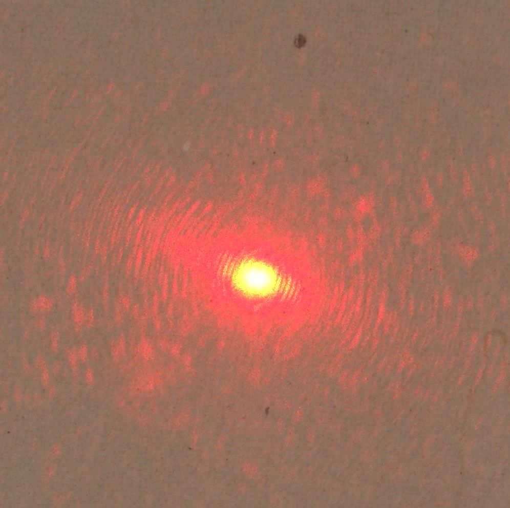 These next three photos show the intensity of the red dot on the different manual settings. I set my camera in manual mode so that the exposure and aperture settings were the same for all the photos to give you a good idea on the differences in intensity between each mode. The subtension of the aiming dot is 3 MOA, but this subtension size seems to increase/decrease with intensity level. In the automatic mode, I could clearly tell a difference in the dot intensity as I changed the surrounding lighting. The laser comes with a lens cover that is attached to the body of the laser. The cover slides to the right and stays snuggly against the body of the laser. As mentioned earlier, there is a green LED light beside the laser power switch that will illuminate when the laser is in operation. The photo below gives you another look at the lens cover and you can also see the glow of the red laser and the light sensor on the front of the FastFire III. These next two photos show the laser projecting onto some drywall. Both photos were taken with the same settings on my camera and give you an idea of the relative brightness between these two modes. If you consider low is <1mW and high is <5mW, then high should be approximately 5 times brighter. The hue around the red dots in the photos appears to be a function of glare on my camera lens and not how it looks on the wall.