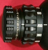 Both sides of the eyepiece included the Burris logo along with their brand name. The top of the eyepiece is marked with the model and zoom range of the scope, "XTR II 525", along with "RETICLE FOCUS" which is probably not needed on this high end level of riflescope. The power adjustment ring has a sculpted ridged style that is also used on the turret caps which gives a good gripping texture. The ring is marked with the powers 5, 7, 9, 12, 15, 20 and 25 powers and it only takes about 1/2 turn of the ring to zoom from 5x to 25x. These next two photos show the reticle focus adjusted fully in and fully out. The outside diameter of the eyepiece measures about 44.25mm and the outside diameter of the reticle focus ring measures about 44.3mm. The eyepiece flip-up cap fits nicely over these surfaces. The riflescope comes with large diameter elevation and windage turret caps, side focus/parallax adjustment knob and multi-position illumination switch. Each of these has a ridged sculpted surface similar to the power adjustment ring. Potentially the greatest feature in any long range riflescope is going to be elevation and windage turret adjustment features with an emphasis on the elevation turret. If you cannot rely on the values indicated, the repeatability of making adjustments and the ability to return to zero, you will not be satisfied with your riflescope. Burris states that their XTR II riflescope internals are "All hand-fitted internal assemblies are triple spring-tensioned for absolute shock-proofing, even under severe recoil. They are vibration resistant, even on extended vehicular patrols." I would love to take the scope apart and study this triple spring system, but instead I'm going to take Burris' word on that feature and know that I can rely on their Forever Warranty if I have an issue in the future. The elevation turret cap is marked with two rows of numbers. The first (lower) row is marked 0 through 24 MOA with 1/4 MOA hash marks between. The second (upper) row is marked 25 through 49 MOA. Above these numbers is the direction to turn the cap to produce an "UP" bullet impact. Basically the turret cap has 25 MOA of adjustment per revolution and the ability to dial directly to 50 MOA without having to keep up with adding turns which gets you out to about 1275 yards with just two turns using a 6.5 Creedmoor with Winchester 140gr BTHP Match ammunition. At 25 MOA per revolution and 1/4 MOA clicks, this gives the turret cap 100 clicks per revolution. The top of the cap is marked with "1/4 MOA" and "UP →". This elevation turret cap also has a Zero Stop which allows you to dial back down to your original zero and the turret comes to a firm stop preventing further down travel. Burris states the "Zero Click Stop adjustment knobs let you quickly and easily revert back to the original yardage setting without counting clicks" and I feel this is a "must have" feature on a rifle scope that is used for long range shooting. If you are diligent and disciplined to always dial back to your zero between firing scenarios, you might be able to get away without a zero stop. The combination of 25 MOA per turn and the zero stop feature are big plusses for this riflescope. As you dial in an up elevation value, the turret housing is marked showing each full revolution just in case you get lost in the adjustment. In the photo below, I maxed the up travel to 66 MOA which represents two full turns (50 MOA) plus the additional 16 MOA shown. Burris states "Elevation Adjustment, Total Capability: 90 MOA Example: 50 MOA is roughly 25 MOA from center." I think this is a little confusing, but I interpret that total capability means ±45 MOA. The Users Guide states "This riflescope is shipped from the factory with the optical center set 20 MOA below center. Without tapered bases, the initial sight-in or bore sighting will likely produce a considerably high initial point of impact. Because of the Zero Stop feature, as shipped from the factory the scope has no immediate capability for downward point-of-impact adjustment." Since the riflescope shipped with a 20 MOA below center point, the 66 I was able to dial in makes perfect sense (45 from true center plus 20). The windage turret cap is clearly marked with MOA values of 1 through 11 in both the right (R) and left (L) directions. There are two major hash (MOA) marks that are unlabeled which would represent 12 MOA for each direction. Just like with the elevation turret, the windage turret has 25 MOA of adjustment per revolution with 1/4 MOA clicks for a total of 100 clicks per turn. The reticle comes centered for windage and has about ±27.5 MOA of adjustment which should be more than enough for most situations. The side focus/parallax adjustment and illumination switch are incorporated into the left turret side of the turret housing. The focus/parallax is adjusted with the inner ring and can be adjusted from 50 yards to infinity (∞) with markings at 50, 75, 100, 200, 300, 400, 800 and ∞. This ring has a smooth firm feel as you adjust the focus. The illumination switch is on the outside of the focus/parallax adjustment. The switch has 11 different intensity levels from 1 to 11. Between each level, there is a dot symbol. This dot symbol and the OFF positions located before 1 and after 11 all represent locations where the illumination is off. Basically, there is an off position before and after each illumination level to allow you the ability to quickly turn on the illuminated reticle to your desired intensity. In an effort to always be full disclosure on any review, I started noticing that the illumination switch was a little finicky shortly after I received the riflescope. After range testing, the switch would only work in certain illumination levels. I sent the riflescope back to Burris and they corrected the issue. From the time I dropped the riflescope off at FedEx until the time it arrived back at my door was only 12 days and they sent me a new riflescope. I don't 