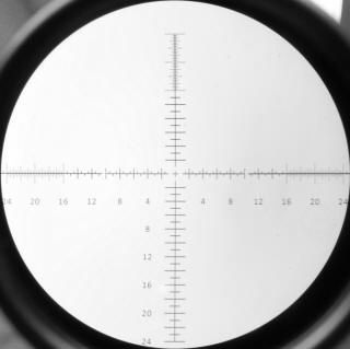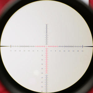 Figure 3 To give you a better look at the SCR™ MOA reticle, these next two photos were taken at 5x and 25x through my riflescope. Keep in mind that because this is a first focal plane (FFP) riflescope, any of the reticles above will look much smaller when you are at the lowest magnification level. At increased or higher magnification levels, the reticles will become larger and the details easier to identify. One thing I noticed on the SCR™ MOA reticle was that the image at the Burris website was slightly different than the reticle on my rifle scope. The image below shows the advertised reticle configuration which has the thick windage lines at 36 MOA on the left and right. Also the illuminated portion of the reticle goes out to 12 MOA on the left and right. Please ignore the bad photo below, but it still shows the reticle at the same zoom level as above. The actual reticle thick windage marks are at 32 MOA on the left and right and the illuminated portion of the reticle (not turned on in the photo below) goes out to 10 MOA on the left and right. I point this out only to show that there is a slight difference between what you see at their website versus what you may get in your riflescope. Perhaps the advertised image is in some of the other power (zoom) range riflescopes and not this particular model. The cost of this riflescope is $1249 at several places online like Optics Planet or Midway USA. Make sure you always shop around for the best prices. If you are interested in the G2B Mil-Dot™ version, then the price seems to be about $50 less. During my reviews I like to compare my results