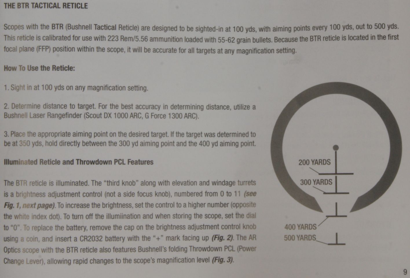 for the Bushnell AR Optics AR/223 1-4x24mm Throw Down PCL Riflescope. The