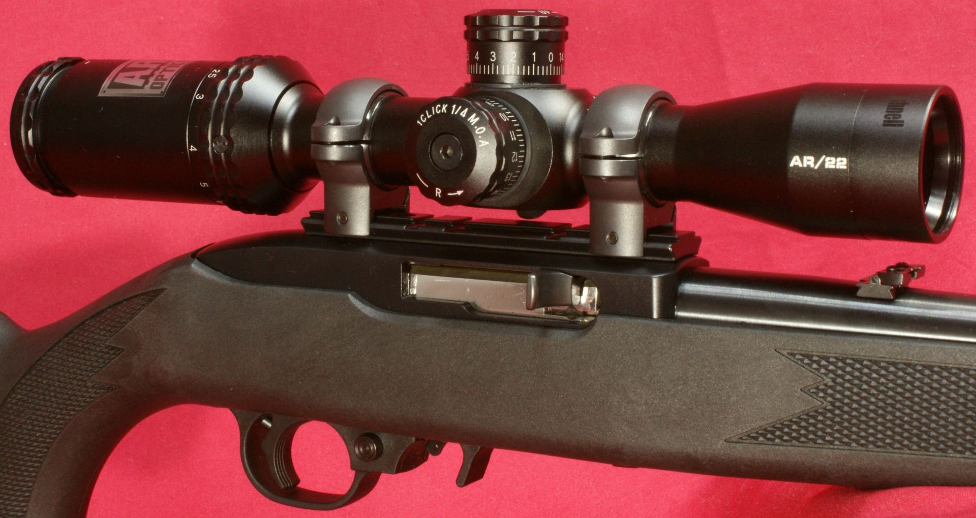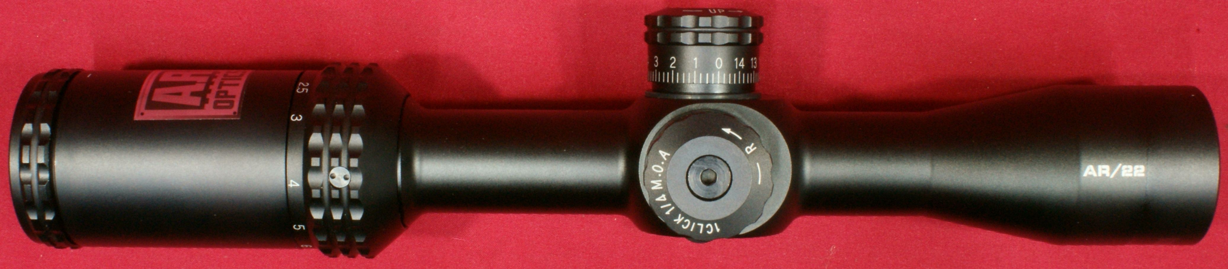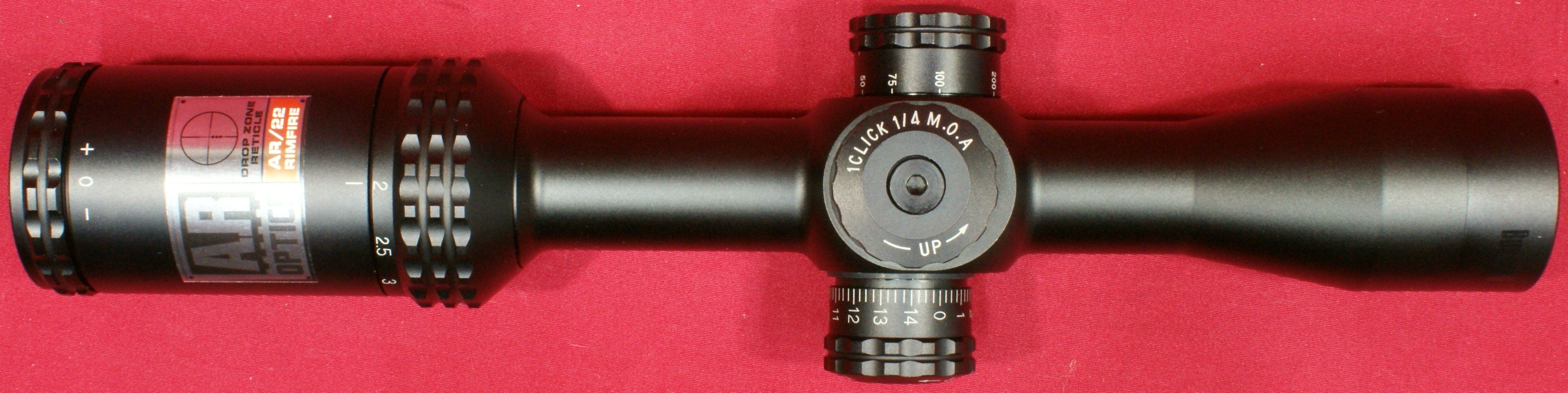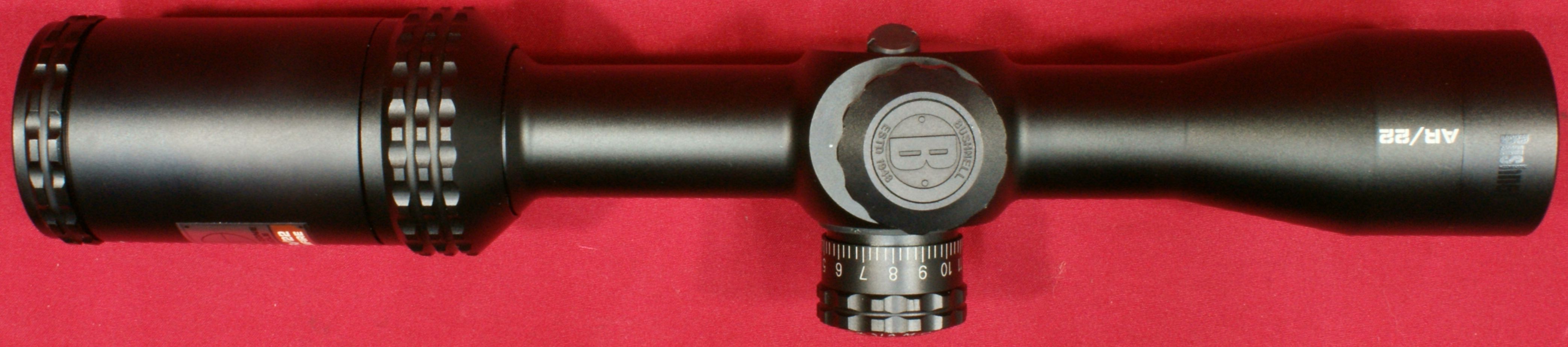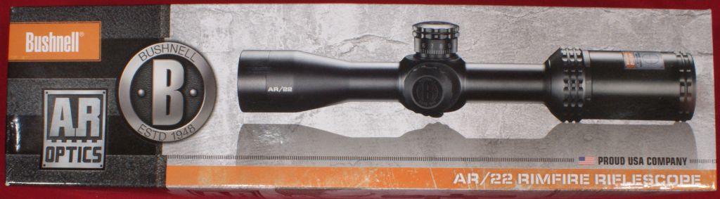 Bushnell AR Optics 2-7x32mm Not long ago, I acquired a new Ruger 10/22 LaserMax Rifle and found myself in the need of a new rimfire riflescope. A couple of features I was looking for were a scope that had a side parallax adjustment knob, externally adjustable bullet drop compensation (target) turrets and a zoom range from 3x to 9x or 12x. As I was looking through the latest Cabela's Shooting Catalog, I came across Cabela's Pine Ridge Tactical Rimfire Riflescope which offered all these features so I decided to try one out. Fortunately, I ended up sending that scope back to Cabela's because one of the lenses became loose inside the scope. The reason I say "fortunately" is that this put me back on the search for another rimfire scope which eventually lead me to Bushnell's new AR Optics 2-7x32mm Rimfire Riflescope which is called their "AR/22 Rimfire Riflescope." This scope, being a 2-7x power, fell short of my initial criteria of 3-9x, but after studying the limited photos on the web, I was able to determine that the parallax adjustment would go all the way down to 10 yards and I felt this was a big plus for a rimfire scope. In reality, I tend to over-scope my rimfire rifles and a 2-7x power is probably a better range for a rimfire scope because of the wider field of view you get at the lower power. Since I had a refund due from the return of the Pine Ridge scope from Cabela's, and since I was able to negotiate free shipping with Cabela's, I ended up purchasing the Bushnell AR/22 Rimfire Riflescope from Cabela's for $139.99.