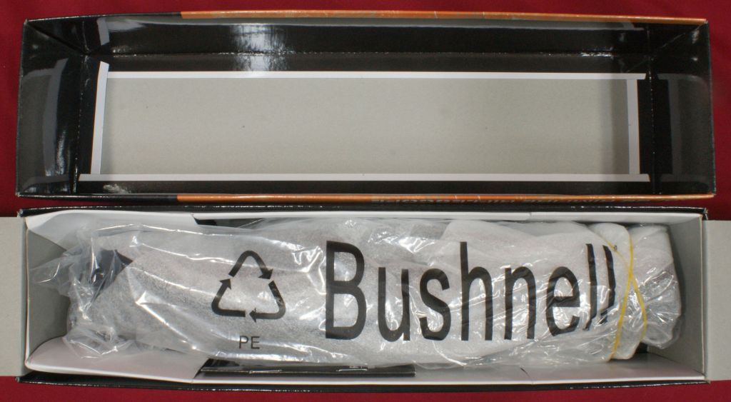 The Bushnell AR Optics 2-7x32mm Scope comes boxed as shown below. Bushnell identifies this scope as their "AR/22 Rimfire Riflescope" and for short I refer to this scope as the "AR/22 Scope" throughout this review. The ends of the box state the key features for the AR/22 Scope. The scope comes packed inside a thin foam wrapper and plastic bag as shown below. The next photo shows the contents inside the box which were: