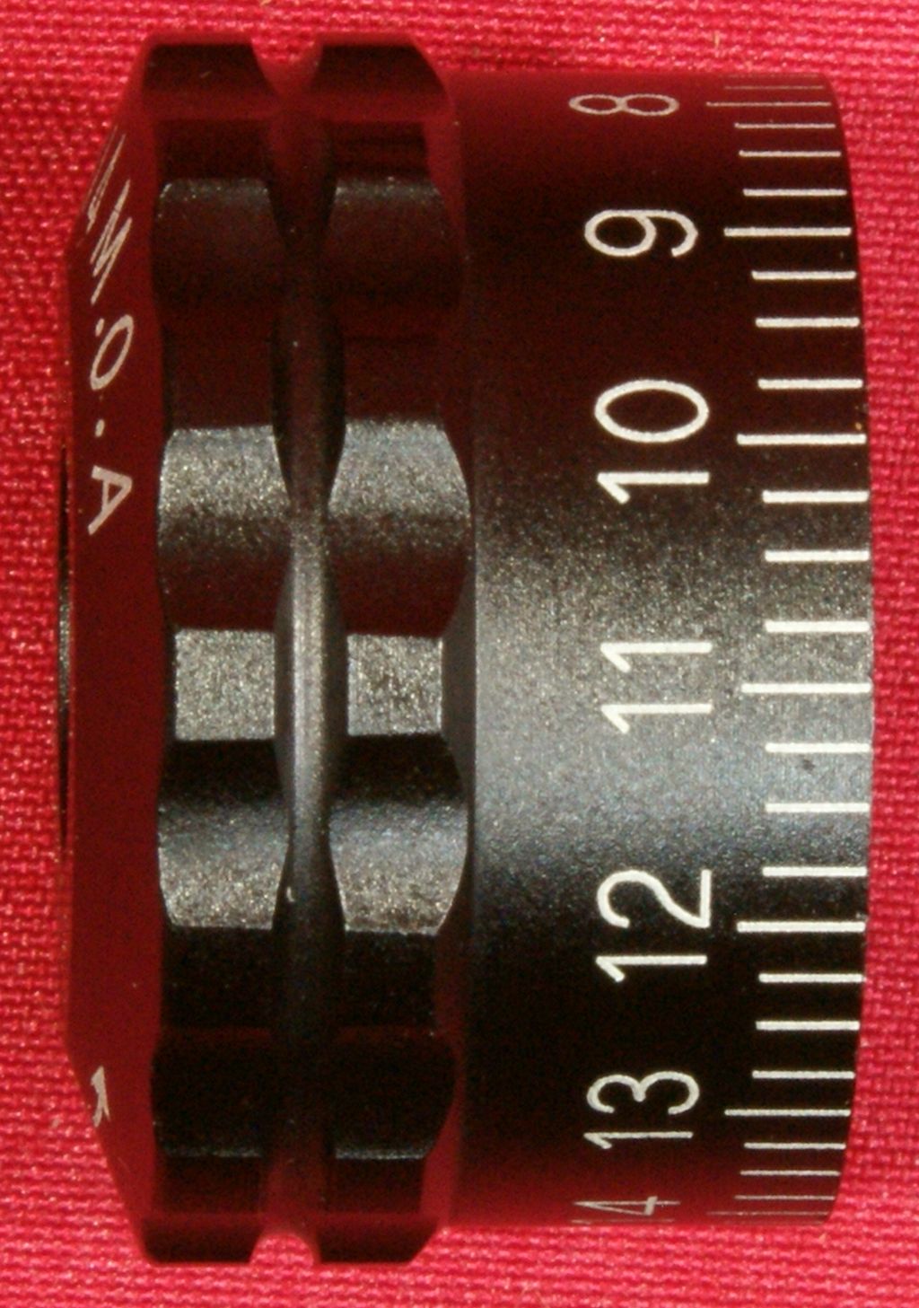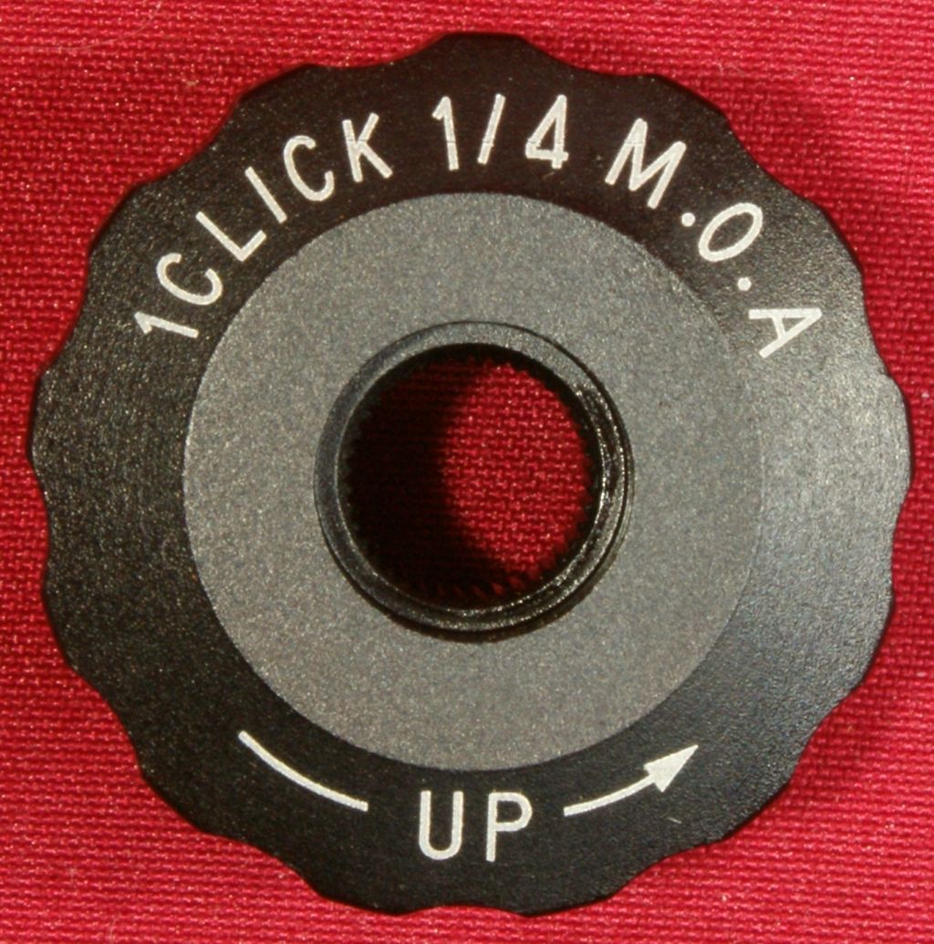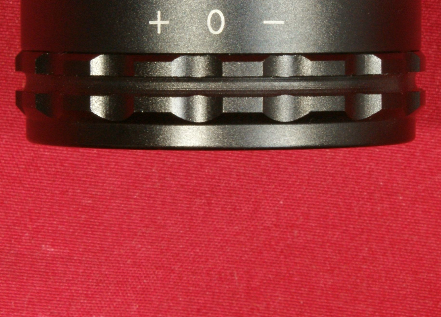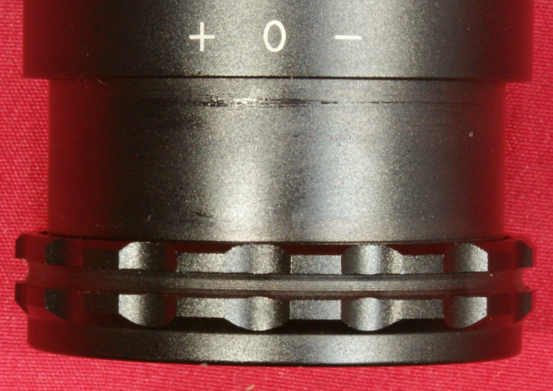 The Bushnell AR/22 Scope has a 1" one piece tube construction and comes in a black matte finish. My first impression of the scope was that it seemed like a quality product and has a very target/tactical look by having the target style turret caps and side parallax adjustment knob. Also, the ridged and sculpted caps and rings gives the scope an interesting look. The scope measures 11.07" in length with the eyepiece focus screwed all the way inside the eyepiece and 11.63" with it screwed out. The specifications state 11.3" which is close to the length for a zero focus correction position. The distance between the locations where the 1" tube starts to increase in diameter for the objective and eyepiece ends is about 4.7" and relates to the mounting length of 4.6" stated in the specifications. Notice that the gas purge/fill port located on the bottom of the scope sticks down and your rings for mounting the scope will need to be high enough so that this cover does not touch your rifle or rail. The scope weighed in at 19.7 ounces which is close enough to the 19.7 ounce specification weight. The objective lens is 32mm in diameter and the scope objective end has an outside diameter of 1.54" (39.2mm). The 32mm lens along with a range of 2x to 7x power gives it exit pupil diameters 13.5mm at 2x and 4.6mm at 7x according to Bushnell. Exit pupil diameter is typically calculated by taking the objective lens diameter and dividing it by the power of magnification. Since 32mm / 2 power should give you an exit pupil diameter of 16mm, I feel that either Bushnell's specification value is either; A - wrong, B - this is actually a 2.37x power scope on the low end, or C - Bushnell has another method for measuring true exit pupil diameter. After studying some of the other scopes in the AR Optics line, I believe they may have another method for determining this value. The objective end has the "Bushnell" name stenciled in black lettering located at a 120° spacing around the end ring and "AR/22" in white lettering located on each side of the scope body. The scope comes with target style turret caps marked in MOA increments with each click being 1/4 MOA which is approximately 1/4" at 100 yards. Each cap is marked ("UP" or "R") with the direction to turn the cap to shift your point of impact. Since this scope has a bullet drop compensating reticle, I feel the key advantage to target style turrets is that you can quickly adjust your zero for the various velocity and bullet weight of the ammunition being used (i.e. 36 gr, 40 gr, or subsonic, standard, high and hyper velocity). I found there to be a 5 MOA difference in zero at 50 yards between the 40 gr Wolf Match Target (1016 ft/sec) and 36 gr Federal Champion Value Pack (1261 ft/sec). By knowing these differences, this allows you to quickly correct for different ammunition so that your reticle center is zeroed. These next photos give you a good look at the elevation and windage turret caps. Also note the red index marks on the scope which are your reference points when making adjustments. Each cap had firm resistance and made positive audible clicks as I made my 1/4 MOA adjustments. The elevation cap had 93 MOA of adjustment from fully down to fully up. The windage adjustment knob had 117 MOA of adjustment from a fully left to fully right position. The side parallax adjustment knob has the same style as the turret caps and is marked with yard increments of 10, 15, 20, 30, 50, 75, 100, 200, 300 and ∞ (infinity). Bushnell did a nice job of explaining this feature in their Instruction Manual and I have added the text below. You may have noticed that placing your eye at different positions behind the scope’s eyepiece causes the reticle crosshairs to appear to move around to different points on your target. This is called “parallax error” (target and reticle are not in the same focal plane), and it becomes more noticeable (and more of a problem) at shorter distances and/or when the scope is set to higher powers. Your riflescope may provide an adjustment for parallax compensation, which works by moving an optical element until the target (based on its distance) appears in the same plane of focus as the reticle. Instead of the typical parallax compensation design which adjusts the objective lens at the front of the scope (“adjustable objective” or “AO”), your scope uses an movable lens back near the reticle, so the adjustment can be more easily made with a “side focus” knob placed next to the windage and elevation adjustments. Just line up the estimated distance to your target with the index dot on the body of the scope, and you will eliminate the aiming errors caused by parallax. After setting the side focus, you can double check by moving your head around from side to side behind the eyepiece-the point of aim should not shift if the side focus is correctly set. An alternative method is to look through the scope and turn the Side focus knob until the target, at whatever range, is sharply focused. Since rimfire scopes without parallax adjustment capabilities are typically set to be parallax free at 50 yards, and since I find that the majority of my rimfire shooting is much less than 50 yards, I feel that the adjustability of this scope to be parallax free all the way down to 10 yards is a major benefit. Looking back, I have personally experienced parallax aiming errors over the years and have seen many times that young or inexperienced shooters can become frustrated when they are shooting at close range and are continually getting large groups. By minimizing or removing parallax error, the scope becomes more forgiving on eye placement and the need to look down the center of the scope is not as critical. The photo below shows the end of the parallax adjustment knob. The bottom of the scope is marked with the model number "AR92732" and "Made in China". Since Bushnell offers a Limited Lifetime Warranty on their AR Optics, quality issues should not be a p