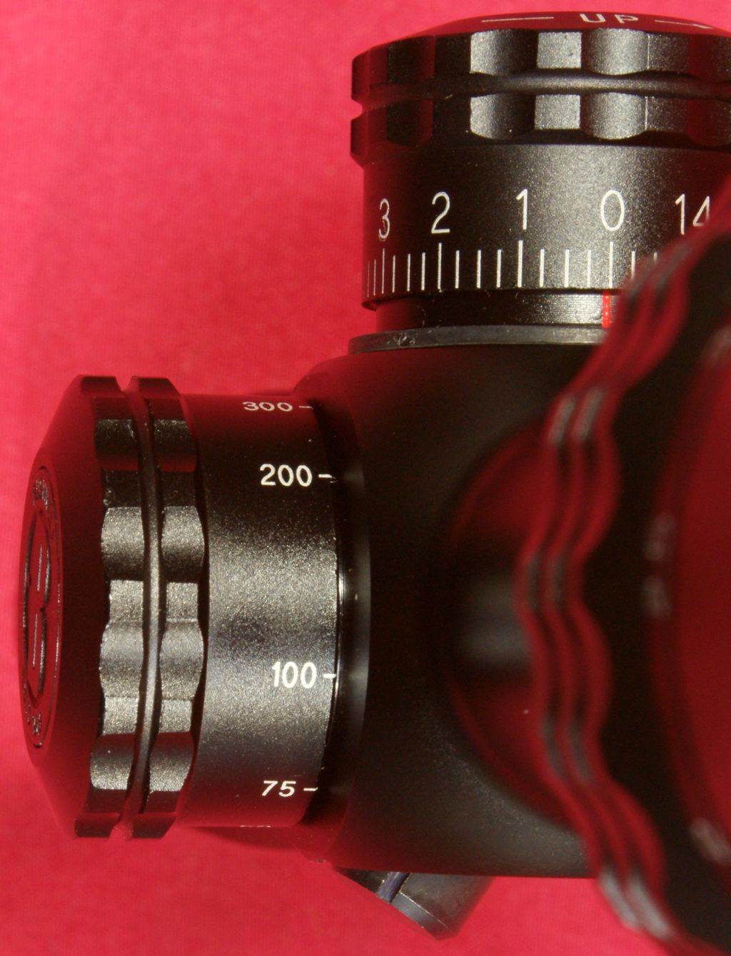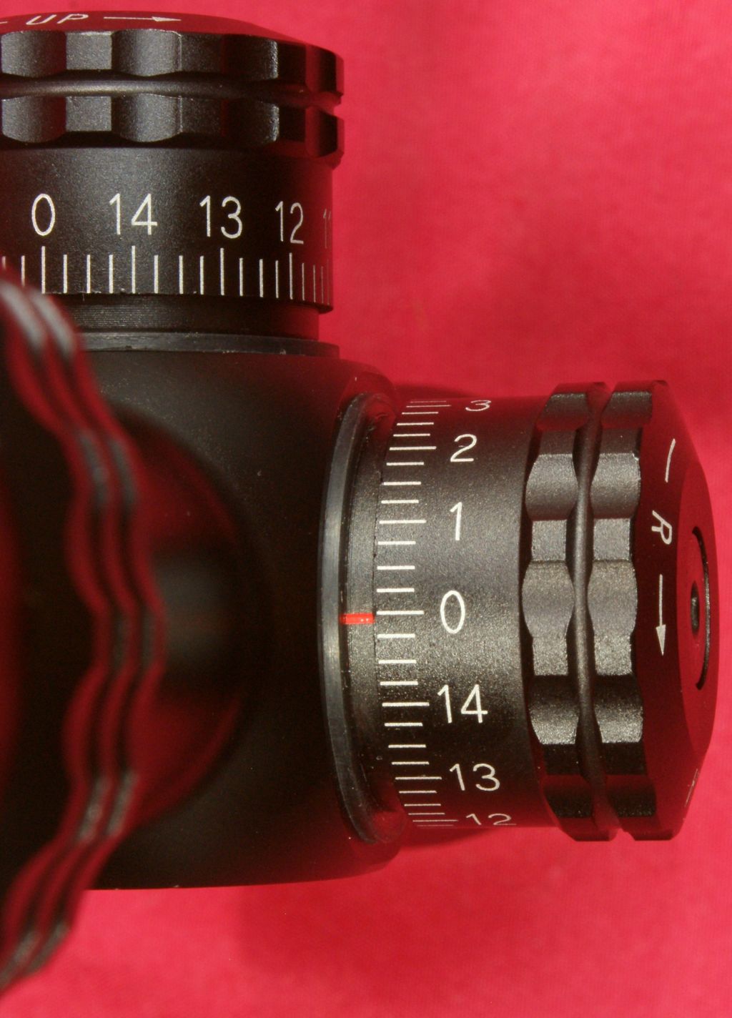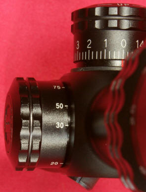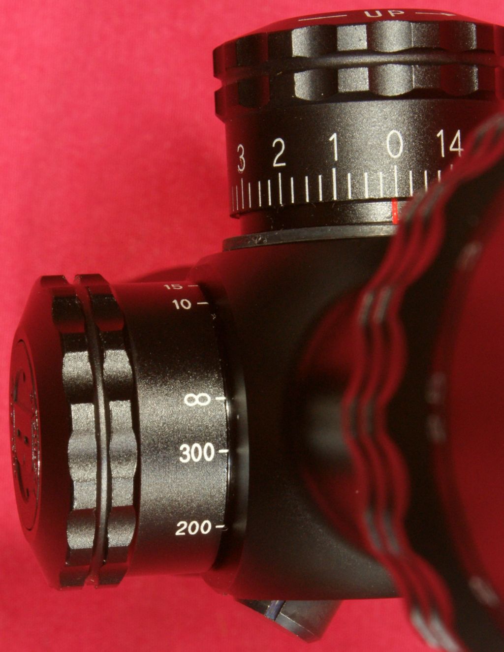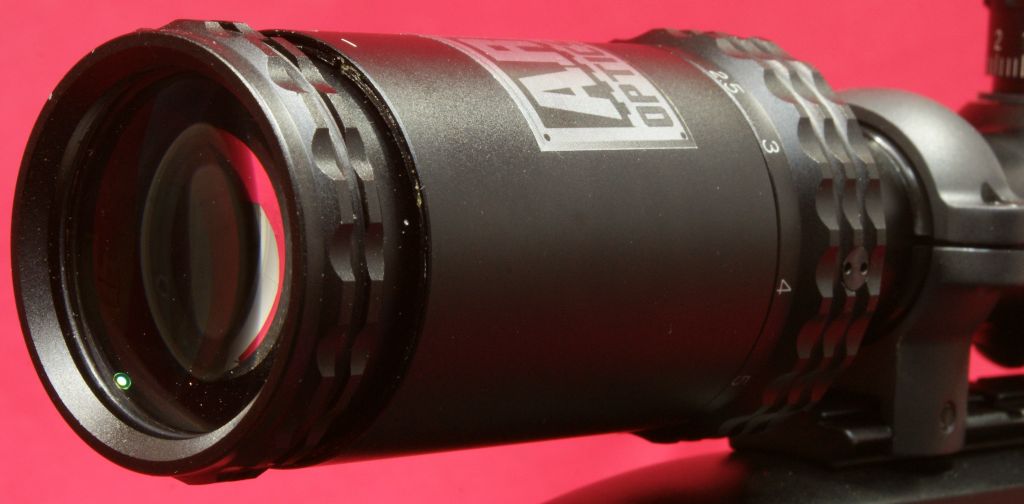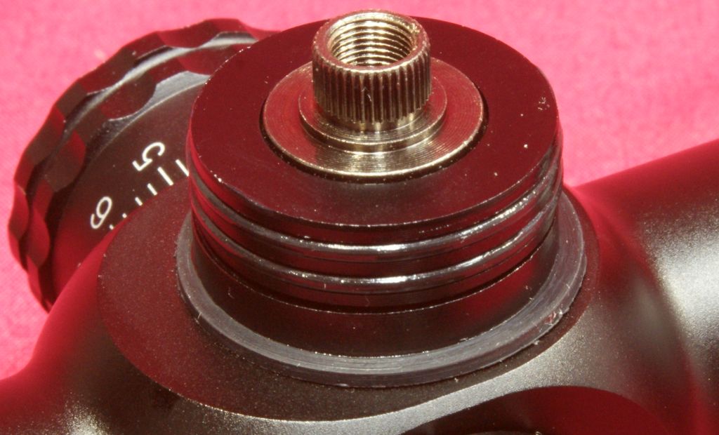 The Bushnell AR/22 Scope has a 1" one piece tube construction and comes in a black matte finish. My first impression of the scope was that it seemed like a quality product and has a very target/tactical look by having the target style turret caps and side parallax adjustment knob. Also, the ridged and sculpted caps and rings gives the scope an interesting look. The scope measures 11.07" in length with the eyepiece focus screwed all the way inside the eyepiece and 11.63" with it screwed out. The specifications state 11.3" which is close to the length for a zero focus correction position. The distance between the locations where the 1" tube starts to increase in diameter for the objective and eyepiece ends is about 4.7" and relates to the mounting length of 4.6" stated in the specifications. Notice that the gas purge/fill port located on the bottom of the scope sticks down and your rings for mounting the scope will need to be high enough so that this cover does not touch your rifle or rail. The scope weighed in at 19.7 ounces which is close enough to the 19.7 ounce specification weight. The objective lens is 32mm in diameter and the scope objective end has an outside diameter of 1.54" (39.2mm). The 32mm lens along with a range of 2x to 7x power gives it exit pupil diameters 13.5mm at 2x and 4.6mm at 7x according to Bushnell. Exit pupil diameter is typically calculated by taking the objective lens diameter and dividing it by the power of magnification. Since 32mm / 2 power should give you an exit pupil diameter of 16mm, I feel that either Bushnell's specification value is either; A - wrong, B - this is actually a 2.37x power scope on the low end, or C - Bushnell has another method for measuring true exit pupil diameter. After studying some of the other scopes in the AR Optics line, I believe they may have another method for determining this value. The objective end has the "Bushnell" name stenciled in black lettering located at a 120° spacing around the end ring and "AR/22" in white lettering located on each side of the scope body. The scope comes with target style turret caps marked in MOA increments with each click being 1/4 MOA which is approximately 1/4" at 100 yards. Each cap is marked ("UP" or "R") with the direction to turn the cap to shift your point of impact. Since this scope has a bullet drop compensating reticle, I feel the key advantage to target style turrets is that you can quickly adjust your zero for the various velocity and bullet weight of the ammunition being used (i.e. 36 gr, 40 gr, or subsonic, standard, high and hyper velocity). I found there to be a 5 MOA difference in zero at 50 yards between the 40 gr Wolf Match Target (1016 ft/sec) and 36 gr Federal Champion Value Pack (1261 ft/sec). By knowing these differences, this allows you to quickly correct for different ammunition so that your reticle center is zeroed. These next photos give you a good look at the elevation and windage turret caps. Also note the red index marks on the scope which are your reference points when making adjustments. Each cap had firm resistance and made positive audible clicks as I made my 1/4 MOA adjustments. The elevation cap had 93 MOA of adjustment from fully down to fully up. The windage adjustment knob had 117 MOA of adjustment from a fully left to fully right position. The side parallax adjustment knob has the same style as the turret caps and is marked with yard increments of 10, 15, 20, 30, 50, 75, 100, 200, 300 and ∞ (infinity). Bushnell did a nice job of explaining this feature in their Instruction Manual and I have added the text below. You may have noticed that placing your eye at different positions behind the scope’s eyepiece causes the reticle crosshairs to appear to move around to different points on your target. This is called “parallax error” (target and reticle are not in the same focal plane), and it becomes more noticeable (and more of a problem) at shorter distances and/or when the scope is set to higher powers. Your riflescope may provide an adjustment for parallax compensation, which works by moving an optical element until the target (based on its distance) appears in the same plane of focus as the reticle. Instead of the typical parallax compensation design which adjusts the objective lens at the front of the scope (“adjustable objective” or “AO”), your scope uses an movable lens back near the reticle, so the adjustment can be more easily made with a “side focus” knob placed next to the windage and elevation adjustments. Just line up the estimated distance to your target with the index dot on the body of the scope, and you will eliminate the aiming errors caused by parallax. After setting the side focus, you can double check by moving your head around from side to side behind the eyepiece-the point of aim should not shift if the side focus is correctly set. An alternative method is to look through the scope and turn the Side focus knob until the target, at whatever range, is sharply focused. Since rimfire scopes without parallax adjustment capabilities are typically set to be parallax free at 50 yards, and since I find that the majority of my rimfire shooting is much less than 50 yards, I feel that the adjustability of this scope to be parallax free all the way down to 10 yards is a major benefit. Looking back, I have personally experienced parallax aiming errors over the years and have seen many times that young or inexperienced shooters can become frustrated when they are shooting at close range and are continually getting large groups. By minimizing or removing parallax error, the scope becomes more forgiving on eye placement and the need to look down the center of the scope is not as critical. The photo below shows the end of the parallax adjustment knob. The bottom of the scope is marked with the model number "AR92732" and "Made in China". Since Bushnell offers a Limited Lifetime Warranty on their AR Optics, quality issues should not be a p