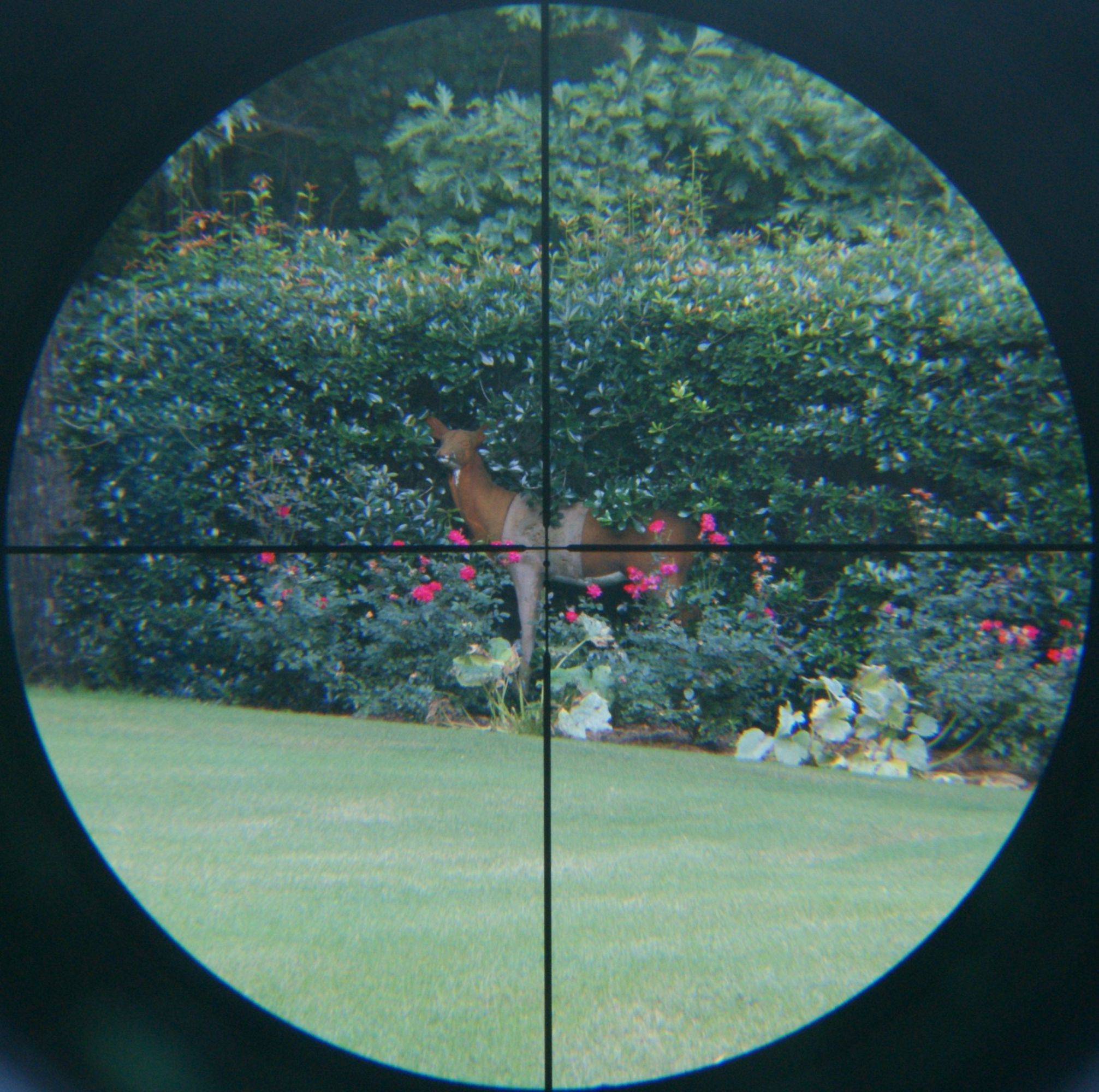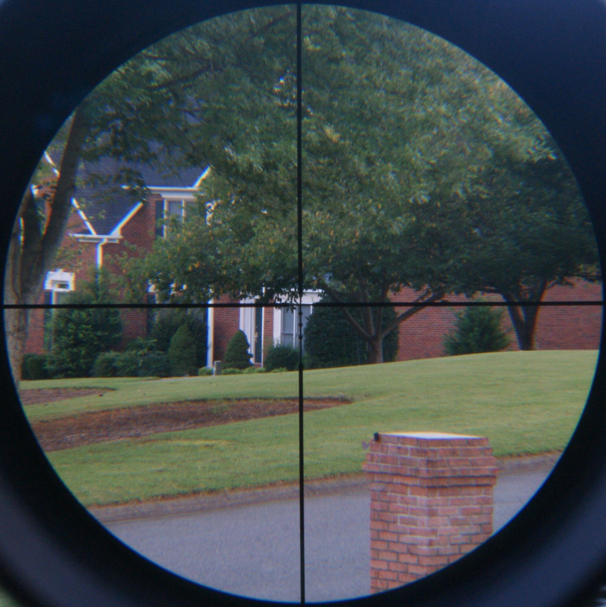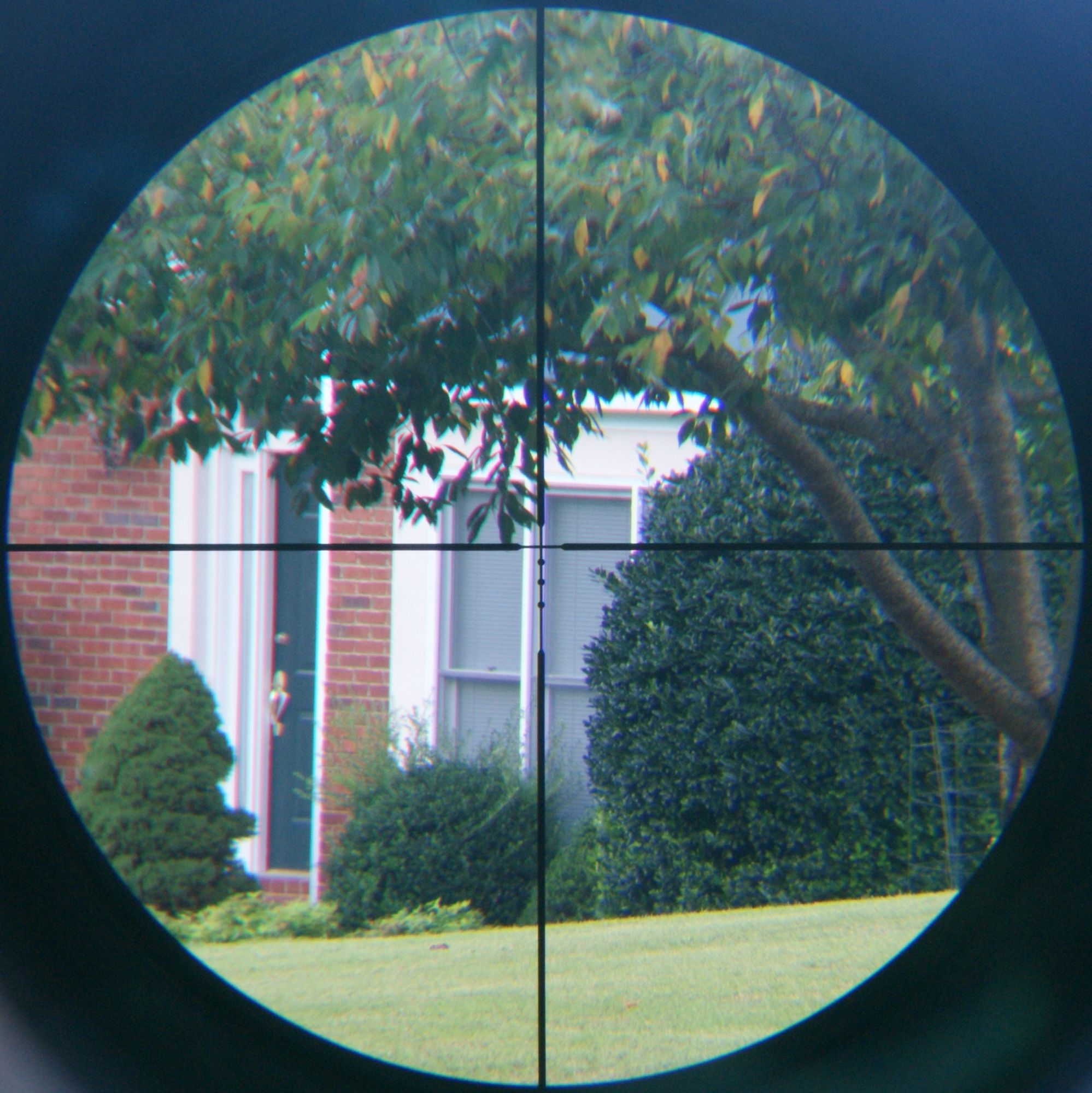 Figure 47 Bushnell states that their AR Optics have fully multi-coated lenses and I found them to be very clear and bright. Considering the cost of the scope, I feel they produce a great value. These next four photos show the scope at 2x and 7x power at about 30 yards and 125 yards. Because these photos are taken through a camera which requires focusing and through a scope with the eyepiece focus and parallax adjustment, the photos are not as good as you see with your eyes which naturally seek a focused state. Overall, I still think the photos are not bad and should give you a good idea of quality of the optics.