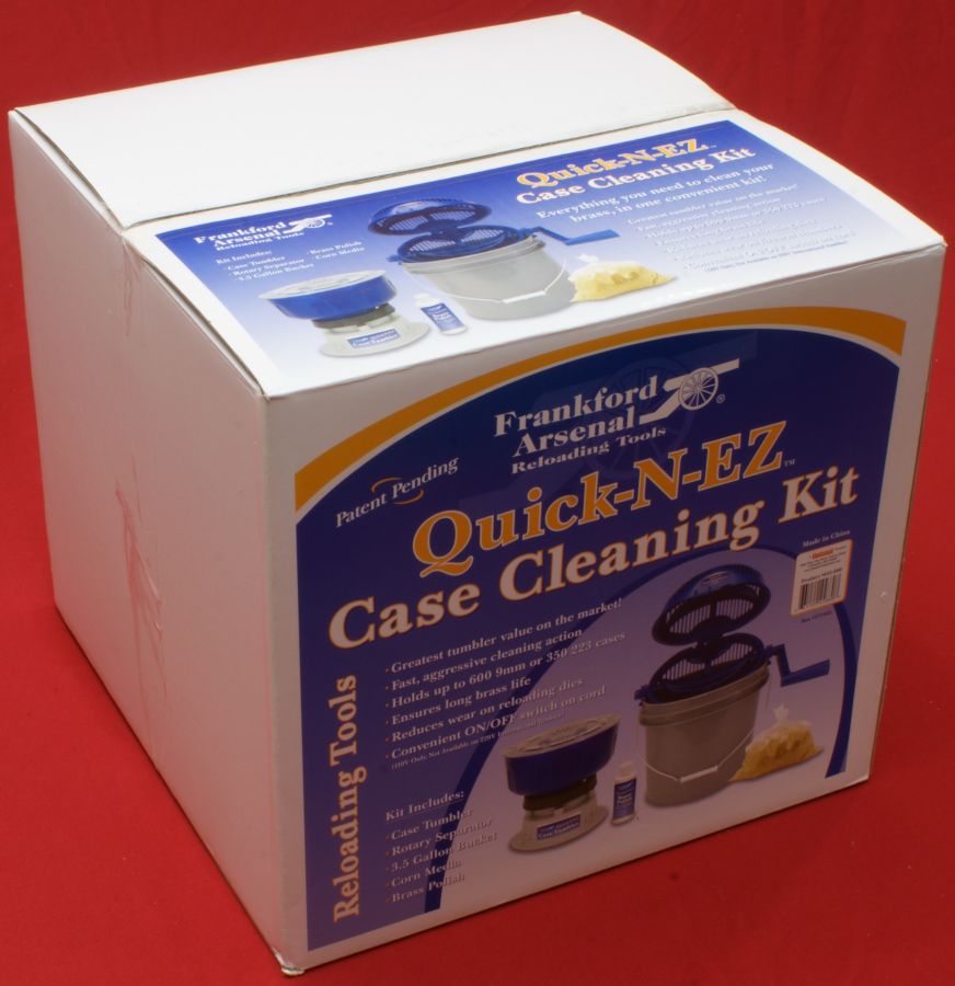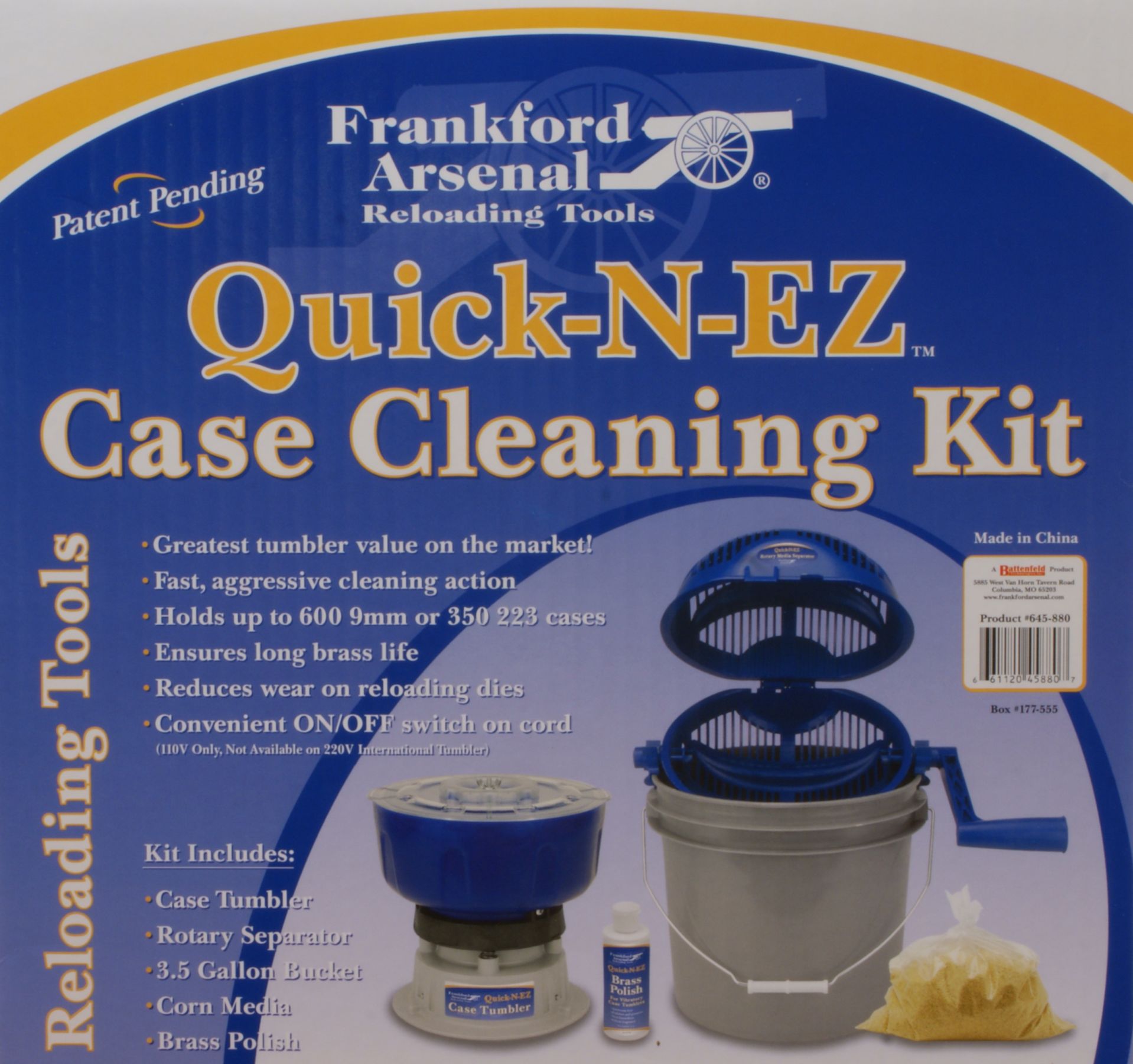 Frankford Arsenal As part of an effort to become more educated about ammunition and to see if I could manufacture some reloads that could produce an accuracy from some of my rifles greater than that being achieved by off the shelf ammo, I decided I would finally venture into the realm of reloading. This review could possibly be looked at more like a "product spotlight" than actual review, but I thought it may be helpful to show the products I decided to purchase on my quest for knowledge and custom ammunition. This past Christmas I found a Frankford Arsenal Quick-N-EZ Case Cleaning Kit under my Christmas tree. Honestly, I did have to coach Santa in the right direction on the purchase. The reason I decided to go with this case cleaning system was simple... value. This kit comes with a case tumbler, rotary separator, 3.5 gallon bucket, brass polish and corn media all for a sale price of $63.99 from MidwayUSA.com. At the time of this review the sale was over so the current price is $73.99. At the Frankford Arsenal website lists a MSRP of $99.99 so make sure you shop around for the best price. It is hard to beat the price considering all that comes with the kit and clearly the kit is a good value compared to purchasing the components separately.