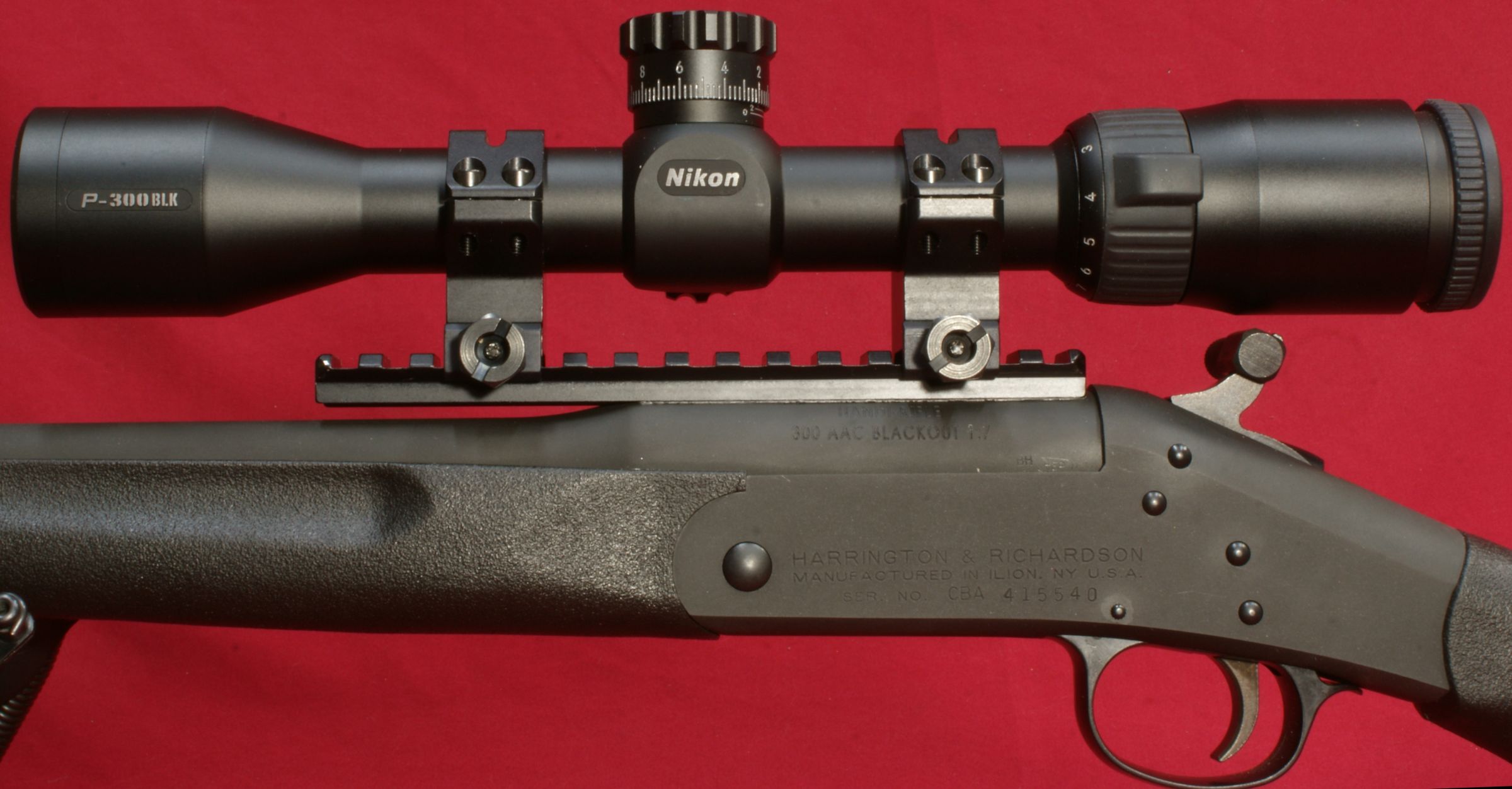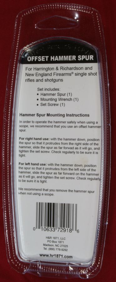 H&R 300 AAC Blackout Handi-Rifle Review Before I could start my range testing of the 300 AAC Blackout Handi-Rifle, I first needed to add a couple of accessories. The first accessory was an offset hammer spur. I'm still surprised there was not one in the box because this is a must (my opinion) if you install a scope that extends over the hammer. Cocking the rifle can be done without an offset spur, but decocking without an offset spur becomes difficult because your thumb keeps being pinched between the hammer and eyepiece. The offset hammer spur shown below is the H&R version specifically designed for the Handi-Rifle and only cost $7 online.