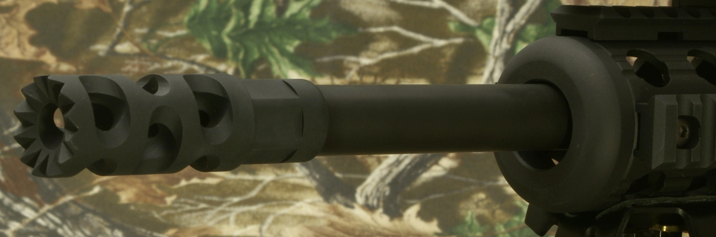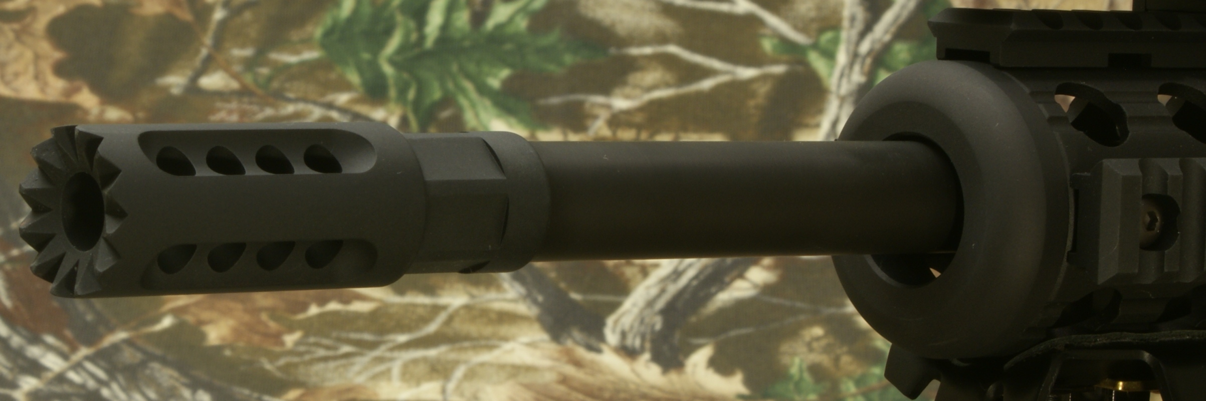 To remove your original flash hider from your Ruger SR-22 Rifle, you can use a small screw driver inserted between the slots as shown below. I held the receiver portion of the rifle while it was resting on the bipod and pistol grip and applied a counterclockwise (left turning) force until the flash hider loosened. After applying the initial breaking torque, I could easily remove it using my fingers only. Once the original flash hider is removed, you will see the threaded end of the barrel and washer. I applied a drop of oil on the exposed threads of the barrel and then screwed the Talon on to the barrel. Each of the Talons would easily thread all the way down while using my fingers only until it made contact with the barrel shoulder. Next I took a piece of lint free cleaning cloth and wrapped it over the hex area to prevent from making any blemish on the surface of the Talon. Using an adjustable wrench with the jaws as tight against the flats of the hex, I was able to apply a torque sufficient to allow the Talon to line up (be clocked) the way I wanted on the barrel. The photo below shows the Iron Eagle Talons installed on my Colt AR-15 and my Ruger SR-22 rifles. The installation of the Talon on my Colt AR-15 was as simple as the steps shown above for my Ruger SR-22 Rifle.