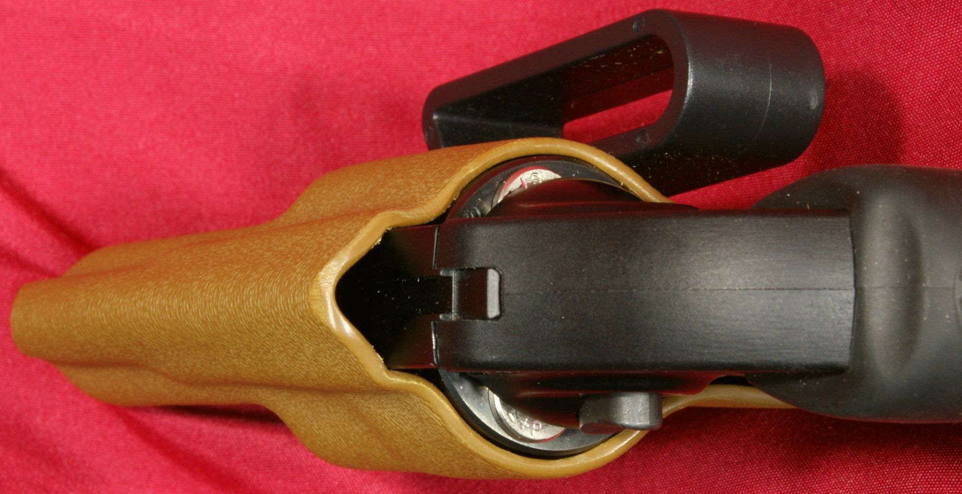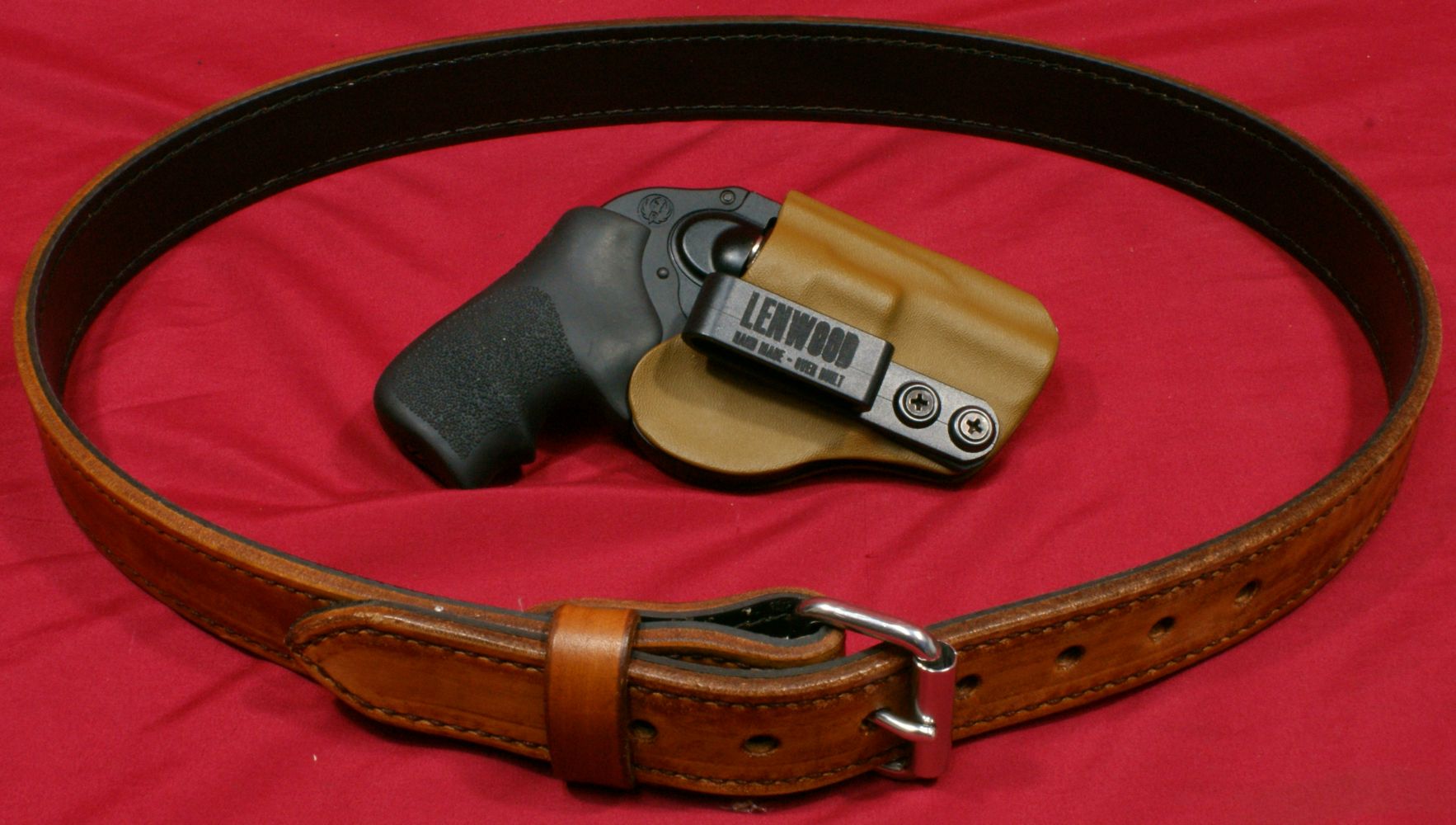 Figure 1 - Color Selections Once the holster arrived and after opening the shipping box, I saw that the standard packaging appears to be a zip-lock bag. Honestly, I'm good with this because I would much rather save money on a product than pay extra for fancy packaging that would end up in the trash within a couple of minutes. As you can see, I also got a Lenwood Hybrid Belt. Lenwood claims that this belt "is hands down the best CCW belt available," so I had to check it out also. My current CCW belt is a 5.11 Trainer Belt which I love, but isn't always as fashionable as it should be. These next photos show the Specter Kydex® Holster in the Coyote color for the Ruger LCR revolver. The holster is basically a sheet of Kydex® which is heated then folded over a prepped handgun and placed in a press where it cools to form the shape of the handgun into the Kydex®. After the Kydex® has cooled, the Kydex® is trimmed and sanded as needed to it's final shape. Handgun retention is typically achieved around the trigger guard where the Kydex® is molded into the trigger area. The belt clip is attached with two screws and spacers are included as needed so the clip angle is not too steep. The holster weighed in at a whopping 2.1 ounces which is nearly nothing. In the case of the Ruger LCR, the total loaded revolver and holster weighed in at only 17.5 ounces which makes this combination very pleasant to carry. These next photos show the fit of the Ruger LCR in the Lenwood Specter Holster and how Lenwood chose to trim the holster to the features of this revolver. Since Lenwood makes holsters for many other handguns, you should consider these photos as an example of their craftsmanship. They rounded all edges of the holster and matched the grip and trigger guard profile very well. I decided to remove one of the screws holding the holster folded together and attaching the belt clip. The screw was installed with a thread locking compound to ensure it didn't work loose. It was possible to rotate the belt clip slightly if pressure was applied. I didn't see this as an issue and it may have also helped to make the holster more comfortable. You can clearly see the shape of the revolver molded into the holster and the photo below gives you an idea on how the area around the trigger guard is recessed into the trigger area to achieve positive retention. I found the retention to be just the right amount, but if you are not wearing a belt for the belt clip to grasp, then depending on your shorts or pants style, you could potentially pull the holster out with the revolver when drawing. I have found this to be the case with other holsters of this style and as long as you are wearing a belt this is not an issue. Also, keep in mind that the level of retention may vary with different style handguns. This next photo shows how well the holster was molded around the cylinder. In this case, there was a small lip at he bottom of the cylinder which was adding slightly to the positive-ness of the retention. As I drew the pistol, the holster opened slightly as the trigger guard pushed past the recessed material in the trigger area. When it opened up, this small lip was of no real consequence. If for some reason something like this is ever bugging you, you can always tweak a Kydex® holster by shaving or sanding an edge. In my opinion, no tweak was required and the holster retention level was good as manufactured. This next photo gives you another look at the fit of the LCR in the holster. In my opinion, the overall fit was very good. These next photos show the holster located at my waist in a location where I like an IWB holster to be placed. For concealed carry purposes, I typically wear the shirt un-tucked as shown. With the shirt over the holster, there was no evidence that I was carrying a pistol. Also, when using the Lenwood Hybrid Belt, there was no way this holster would ever come off during a draw. The Lenwood Hybrid Belt is shown in these next several photos. This belt is probably the most sturdy belt I have seen which maintains a stylish non-tactical or non-duty look. To say it again, there are many duty pistol belts on the market, but few that are stylish in my opinion. I checked the price of this belt against some other leather duty belts and the $67 price from Lenwood is in line with those other belts. I feel at first glance this Hybrid belt looks like many other 1.5" wide leather belt that you might purchase at your local department store, but as soon as you start looking at the details and thickness of the belt you know that this is no ordinary belt. The key feature that makes this belt extremely study is that it is basically two belts glued and stitched together with a total thickness of about 0.26". At this thickness and with the 1.5" width, this belt can easily support nearly any handgun you choose without sagging or rolling over. The outer portion is a full grain leather outer layer. I chose the Natural color, but it is also available in Brown or Black. The inner portion is a PVC coated polyester webbing interior. Lenwood carries this double thickness throughout the entire length of the belt which creates maximum belt strength. They also include a heavy duty chrome plated steel roller and buckle. One thing I need to point out is that with three layers of .26" thick belt material on top of each other along with some air space gives the belt visible thickness in the buckle area when wearing. In my photos above, you can see that this thickness is not too noticeable, but you will notice it the first time you put the belt on. I have been wearing the belt to work every day at my desk job and I don't feel this thickness is too much and seems to be a good compromise for when I'm using the belt as intended for conceal and carry. In the case of the Specter holster with the light weight Ruger LCR, this style of belt is not required and you could get away with nearly any belt with that holster and handgun combination. O