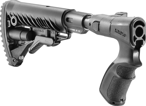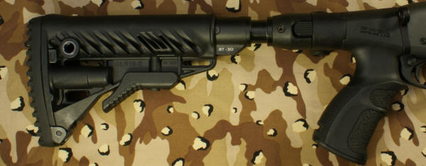 Folding Collapsible Buttstock Review With the popularity of home defense shotguns continuing to grow, there is also a growing increase in quality aftermarket accessories. One of the key accessories that you can put on a shotgun is a replacement buttstock. It doesn't matter if you were budget minded when you purchased a standard stock on your shotgun, or if you spent the extra money and purchased one with a collapsible pistol grip stock, I would bet you still find yourself looking at the different new buttstocks on the market. I recently acquired a Remington 870 Express Tactical Shotgun which came with a standard stock and immediately started looking for the ultimate aftermarket buttstock to add to this shotgun. I remembered seeing a 870 buttstock back when I was doing research on a different product I reviewed from The Mako Group (hereafter Mako) (Mako Recoil-Reducing AR15 Butt stock with an Adjustable Cheek Riser) and thought the Mako 870 buttstock might meet this "ultimate" criteria. This review is for the Mako Recoil-Reducing Folding Collapsible Buttstock for Remington 870 Shotguns (Product Code AGRF870-FKSB). Just as the name says, this is a recoil-reducing, folding, collapsible buttstock that includes a pistol grip and two storage compartments (one in the grip and one in the actual buttstock). If you could ask for more features in a replacement buttstock, I'm not sure what they would be. I usually don't borrow manufacturers photos for my review, but Mako did a great job showing their product in their photo below.