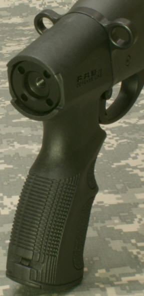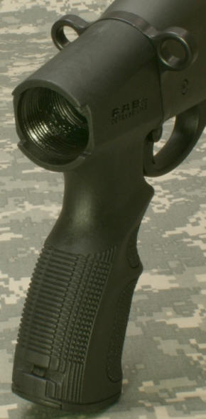 After Modification Once I completed making the modification, you can see below that the grip fits very nicely on the shotgun. One thing I noticed is that you want to remove enough material (if needed) so that you don't put pressure on the trigger plate with the grip because it causes the synthetic material behind the safety to press into the cross bolt safety and this makes it harder to operate. Check it before you tighten the bolts and if it seems to have the same resistance before and after you tighten the bolt, you have removed enough material.