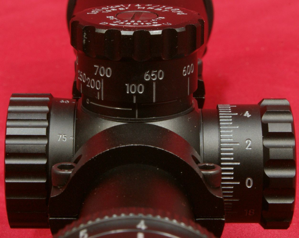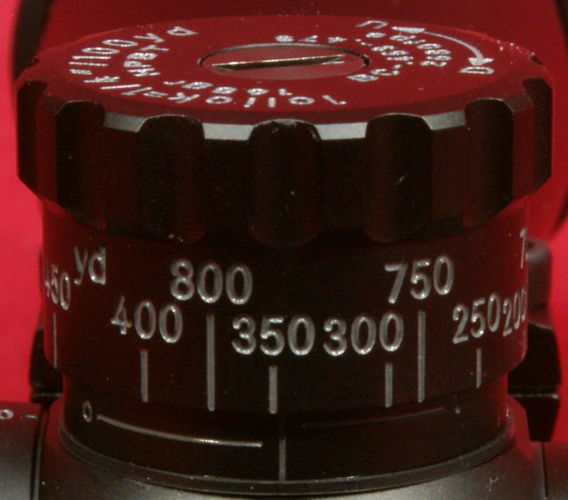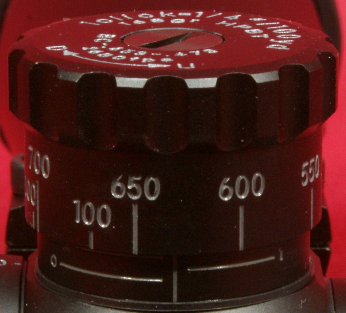 Figure 2 - BDC 800 The reticles are not the only difference between these two scopes. The elevation turret cap markings are also considerably different. The Nikoplex version comes with an elevation cap that is marked in yards and calibrated for a 168gr HPBT bullet with a ballistic coefficient of .458 to .478 and a velocity of 2680 feet/second. The BDC 800 version is a traditional style turret cap marked in 1/4" MOA adjustments. I feel it would have been a nice touch if Nikon would have provided both turret caps with the Nikoplex version scope. Doing so would have allowed the shooter to have a calibrated turret cap for use with a specific match round and a standard MOA style cap to allow the ability to dial in an elevation correction for a greater range of bullet types and velocities. I discuss the use of the Nikoplex cap in detail further in this review.