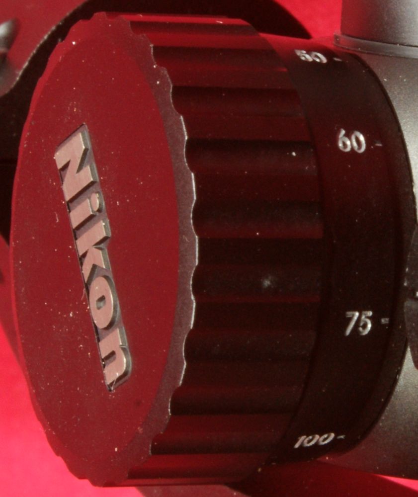 The Nikon M-308 Riflescope The Nikon M-308 Riflescope comes in a black matte finish and measures 13.5" in length with the eyepiece fast focus set and a mid range position. The scope comes with the "M-308" sticker on the eyepiece, but this sticker is easily removed. From these photos you see that the scope has target style turret caps and a side focus (parallax adjustment) knob. The mounting length (total length of the 1" tube) measures about 6.8" with the 1" tube on the objective lens side measuring 2.32" in length and eyepiece side measuring 2.15" in length. Overall, this is a generous amount of mounting length for the scope. After studying the one-piece tube construction and overall finish, it appears that Nikon has done a good job manufacturing this scope. On the bottom of the turret housing is the port used to nitrogen purge the scope. The side focus knob has the "Nikon" name located on the knob so that when the side focus is set to 100 yards, the lettering is inline with the body of the scope. Unless I'm specifically shooting at close or long ranges, I keep my scopes set to be parallax free at 100 yards which is generally the standard for centerfire scopes without a side focus (parallax adjustment) knob. The scope weighed in at 20.2 ounces which was a little over the 19 ounces stated in the specifications. The photos below show the weights of the M-308 mount (5.1 ounces), lens caps (1.2 ounces) and ARD (0.5 ounces). If you add in the weight of the M-308 mount and lens caps, the total weight of this optical system weighs in at 26.5 ounces. If you consider this includes the mount weight, cap weight and the features you are getting (4-16x42 scope with side focus and target turrets), this weight isn't too bad. Objective End The outside diameter measured 49.34mm and has an internal objective lens of 42mm. The 42mm lens and 4-16x power range of the scope gives you exit pupil diameters of 10.5 (42/4) to 2.6 (42/16). For maximum brightness in low light conditions, you are going to need to stick with a power range of 4 to about 8 power so the exit pupil diameter will be closer to your eye's pupil diameter. On each side of the objective end is the "M-308" in gold raised lettering. Turrets The turret caps have a distinctive look with their large gear-style sculpted features. This design allows for a good gripping surface when making adjustments. The elevation turret cap on the Nikoplex version scope is marked with the key information needed when making adjustments and identifying the type of ammunition to use which matches the yardage markings on the cap. For this scope, one click equals 1/4" at 100 yards. Also, the yardage markings are intended for shooting a 168gr HPBT bullet (BC of .453 to .478) at a velocity of 2680 feet per second (fps). Depending on the length of the barrel of your AR style rifle, 2680 fps may not be possible. With the turret cap marked in yards, zero is intended to be with the 100 yard mark lined up with the mark on the turret housing. On this particular scope, the marks didn't line up perfectly. One click difference seemed to shift the mark just to the left or right of the reference line. Between the two photos above and three photos below, you can see all the markings on the elevation turret cap. Yardage is marked at 100, 200, 250, 300, 350, 400, 450, 500, 550, 600, 650, 700, 750 and 800 yards. The windage turret cap is marked in 1/4" MOA increments with whole MOA adjustments labeled at each even number (2, 4, 6, etc.). Both the elevation and windage turret caps have a total of 20 MOA of adjustment per revolution. For this cap, my zero adjustment aligned perfectly with the index mark on the turret housing. For resetting zero on both the elevation and windage caps, you pull the caps out until you hear a click, rotate them to their zero position and then press the caps in until you hear a click again. Also, for both the elevation and windage adjustments, the click adjustments are very distinctive and audible. I decided to pull one of the turret caps off and see what may be underneath. The photo below shows the actual turret portion of the scope. I was a little surprised to see that there were no visible O-rings sealing the cap. Nikon states the scope is both waterproof and fog proof so I'm sure there are seals somewhere within this arrangement. The Instruction Manual states the riflescope is waterproof and will suffer no damage to the optical system if submerged or dropped in water to a maximum depth of 2 meters for up to 10 minutes. This next photo gives you a look at the inside of the aluminum turret cap and the the shape of the steel cap screw. Side Focus (Parallax Adjustment) Knob Nikon decided to go with slightly less aggressive sculpting on the ridges of their side focus (parallax adjustment) knob. One feature that seems different on the side focus knob versus some other scopes I have used is that the knob has a locking feature. With the knob pressed in, the knob is in it's locked position and will not rotate. You must pull the knob out to unlock the knob for making adjustments. I will admit, this took some getting used to, but after a while I got the hang of it. The knob rotates smoothly throughout it's range of adjustment. Also in the photo below, notice that the elevation turret housing has marks to indicate where you are in the range of adjustment. The side focus knob is marked with increments of 50, 60, 75, 100, 150, 200, 300, 500, 1000 and ∞. Eyepiece The eyepiece end measured 44.0mm in diameter and is about 2.5" in length not including the power adjustment ring. The end of the fast focus rings has a layer of rubber to help in the event of an eye socket strike. Power Adjustment Ring The power adjustment ring has what I would consider to be a very slight texturing and had firm resistance when making adjustments. If there were one single feature I would change on the M-308 scope, I would have made the texturing more aggressive to allow for a better slip free