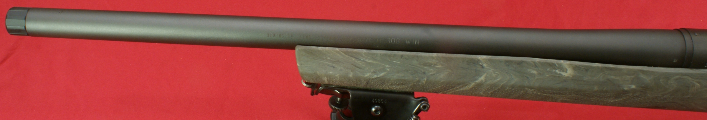 The rifle measured 39.75" in length. The online specifications stated 39 5/8". I would not have expected there to be an 1/8" difference so I checked the current Remington 2011 Catalogue and it states 39.75" so the shorter length dimension is most likely an error. I included these next four photos from Part 2 of the review so that you can see a direct view of all sides of the rifle without the bipod installed. The rifle weighed in at 8.23 pounds which is significantly different than the specification weight of 7.3 pounds. I believe the specification weight is an error. One of the key features of this rifle is the threaded muzzle which allows you to install a suppression device (SD). This photo below also shows the barrels non reflective (matte) black oxide finish. When you remove the 0.63" long steel thread protector you can see the 0.63" length of exposed 5/8-24 thread for the muzzle device of your choice. Also you should notice the light countersink at the front of the barrel to protect the ends of the rifling. The heavy barrel measured a true 20" in length and measures 0.860" in diameter at the interface to the thread protector. The barrel has a slight taper and measured 0.901" in diameter 7.6" down the barrel at the end of the stock forearm. On the right side of the rifle is engraved "Tactical Rifling 1 in 10". This 1:10" twist is another unique feature for this model rifle chambered in the .308 Winchester caliber. The standard (non AAC-SD) SPS Tactical rifle comes with a 1:12" twist and the 1:12" twist is the more common twist rate for a .308 Winchester. The faster twist rate of this rifle is capable of stabilizing longer bullets, which in most cases refers to heavier bullets. Taking a quick look at Miller's Twist Rule for calculating the ideal twist rate and assuming a safe stability factor of 2, a Hornady Superformance Match 178gr BTHP would require a 1:9.92" twist rate. If you shot this same cartridge in a rifle with a 1:12" twist rate, the stability factor would be 1.36. In general, a stability factor of 1.4 is considered the minimum. Also higher twist rates are generally OK and the twist rate on this rifle is nearly ideal for the 175/178 grain rounds on the market today and also provides the ability to stabilize even longer/heavier bullets. What does all this buy you? You should have a good stable 175/178 grain bullet out to 1000 yards. This weight bullet is generally the longest/heaviest you would find with manufactured ammunition. On the right side at the base of the barrel, you see the proof marks of "J" inside a triangle and "REP" inside an oval. The "REP" indicates the barrel was proof tested and the "J" indicates that some type of quality test (probably magnaflux) was performed. The barrel is made from low carbon steel and is hammer forged. On the left side of the barrel is stamped "REMINGTON ARMS COMPANY INC, ILION, NY 308 WIN". Obviously, this rifle is chambered in .308 Winchester. Based on SAAMI recommendations, it is safe to fire the 7.62x51 NATO round in this rifle. The "CF" stamped in the left side of the barrel is the date code and the "C" represents April and "F" represents 2011. You should also notice the stippled texture of the forearm in the photo below. The Hogue Overmolded stock provides generous float room around the sides of the barrel. The forearm has a wide base (semi-beavertail) for added support when shooting from a bench. The forearm has a single swivel stud and has a nice texture on the sides and lower surface. The Hogue stock has a rubbery/sticky feeling texture. The rifle has a fully floated barrel when not supported at the front of the forearm. When the rifle is supported at the front of the forearm by a bipod, the forearm deflects slightly and lightly contacts the barrel. I have a hard time believing this was the plan for this rifle and feel it should not contact under normal shooting conditions from a bipod or bench rest. On the positive side, the front of the stock has a very short area that could be sanded with a Dremel to prevent this contact from occurring.
