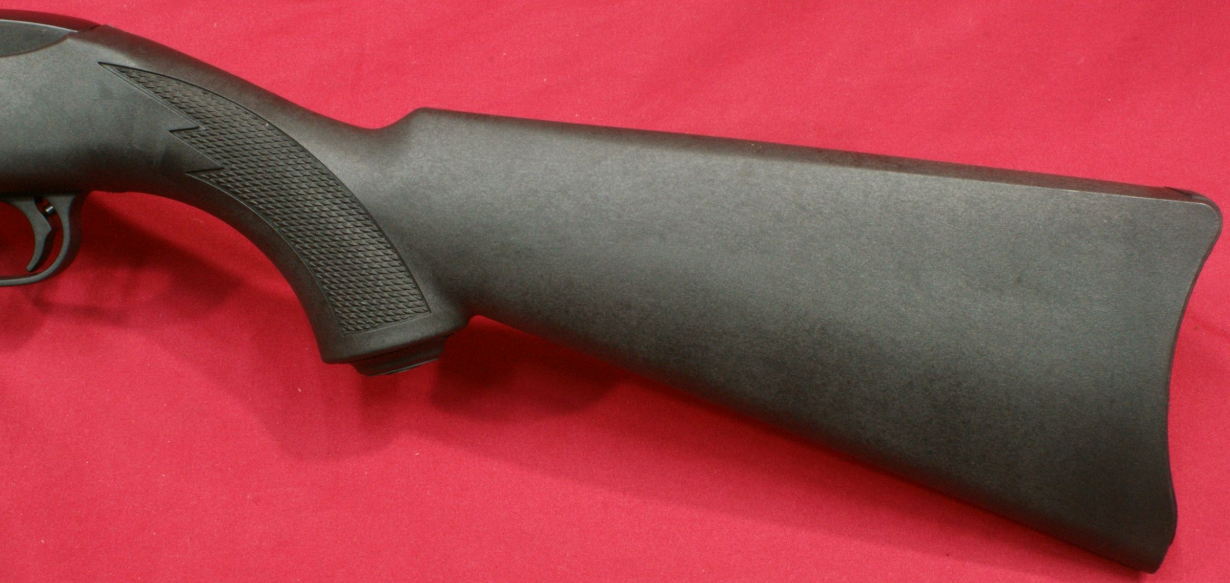 Figure 33 - Locked This next photo gives you a look through the ejection port at the chamber face. This Carbine version comes with a black synthetic stock which has a curved butt plate with checkering to prevent it from slipping on your shoulder. The stock has matching checkering on the grip area and the stock's length of pull measured 13.5". The rifle comes with an aluminum Weaver-style Scope Base Adapter. The adapter is also painted black to match the receiver. To install the adapter, you must first remove the four filler screws. Since the slots in the head of the screws were full of paint, it took more force than normal to hold the screwdriver in the slot to untighten the screws. A slight amount of paint was removed from around the holes when removing the screws. Since this is an aluminum receiver, I don't consider this to cause any corrosion issue. This next photo shows the adapter installed. It is critical to not over tighten the screws. The receiver is aluminum and the screws steel. If you strip any threads, they will be stripped inside the receiver which will cause problems. Ruger states a maximum torque of 12-15 in-lbs and I would not deviate. Although Ruger states not to use thread locker because it may drip into the bolt or receiver, for my installation, I tried to be very careful and installed these screws with a Purple thread locking compound which is intended specifically for smaller screws and allows removal of the screws without the need for heat. The Ruger 10/22 comes with their standard 10-shot rotary magazine which has proven itself for years as the most reliable 10/22 magazine I have ever owned. Ruger recently came out with their new Ruger BX-25 magazine and so far it has also proven to be reliable, but it will take many years of putting it to the test to see if equals the reliability of their standard 10-shot rotary magazine.