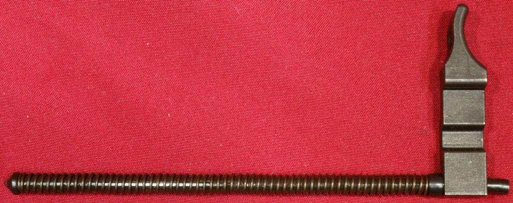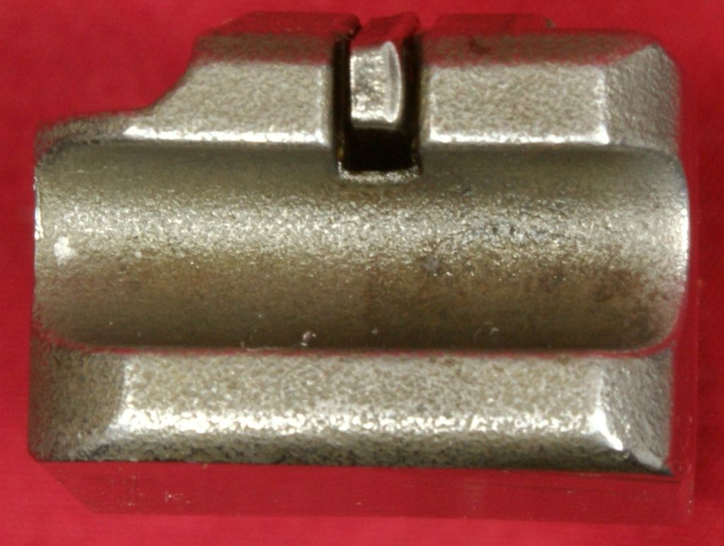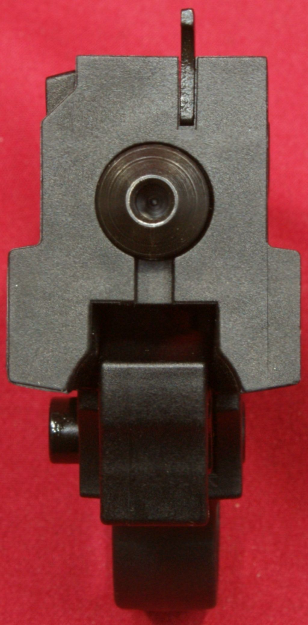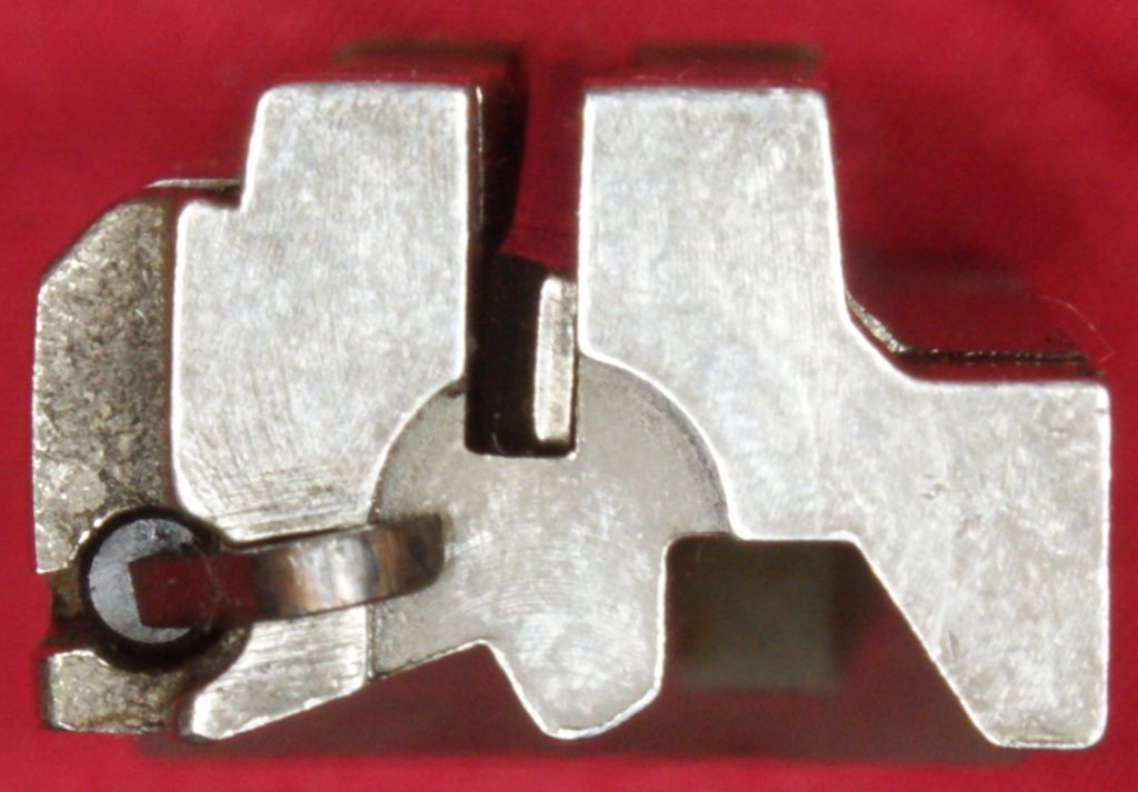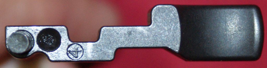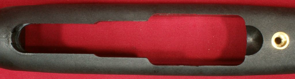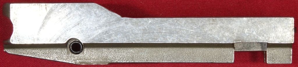 Figure 8 The surface that is exposed through the ejection port is polished to a mirror finish (forgive the finger prints). Other areas are machined as required to produce the desired final dimensions. Clearly areas that are not critical didn't receive the same level of machining based on the tool marks shown below. Cocking Handle, Guide Rod and Recoil Spring Assembly The cocking handle appears to be a MIM part and this assembly is never intended to be disassembled by the user. Trigger Guard Assembly The trigger guard assembly is made up of 27 parts as shown below. The complexity of this assembly is probably why you should think twice before deciding to disassemble the trigger guard assembly. The hammer and sear appear to be made from stainless steel. You can see where the hammer engages the sear by looking through the cutout on the right side of the trigger guard assembly. This cutout allows you the ability to lubricate this surface directly to achieve the best trigger pulls possible. Clearly, looking at the trigger guard assembly you will see that the majority of the components are polymer and the critical components are metallic. I feel this is a good blend of materials to keep costs down and quality up. These next two photos show the hammer in the uncocked position. Below you can see the hammer strut and spring located behind the hammer. The ejector is the piece of metal that sticks forward in front of the hammer. Stock Assembly These photos give you a look at the inside molded areas of the stock. Ruger has added a brass insert to prevent wear on the polymer material that would have been caused by the stock bolt.