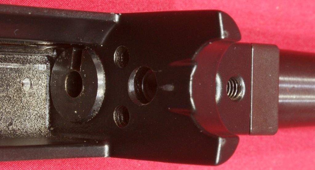 Receiver The receiver appears to be a single piece aluminum casting made from A380 aluminum alloy. The upper inside surface of the receiver shows the overspray areas where they painted the receiver but did not paint the upper surface. Although I'm not 100% sure, I believe Ruger does not fully coat the inside upper surface of the receiver because the bolt slides in this area and would wear off the coating. This was the case on their Ruger 22 Charger and the solution was a regular cleaning to remove the coating residue. The barrel is held in place with a clamp that bolts to the front portion of the receiver as shown below. I checked the torque on these two screws and they were tight. Bolt Assembly The bolt assembly is made up of 7 components and houses the firing pin and extractor. The body of the bolt is made from stainless steel and it appears to be a casted part.