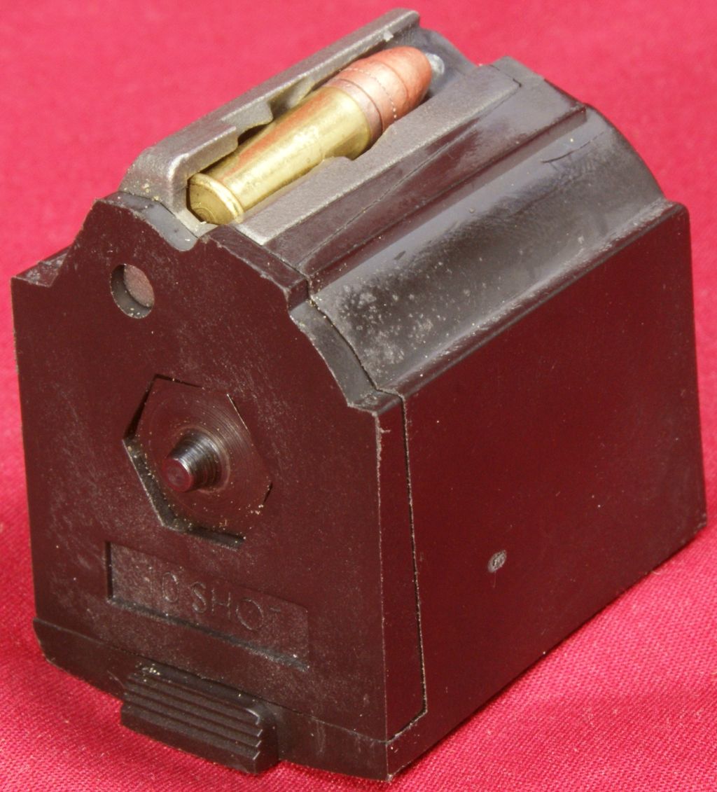 Figure 47 Since the recoil pads on the American Rimfire are made of all polymer material, there is no rubber absorbing material to reduce recoil. Since the recoil on a rimfire rifle is so small, no reduction in recoil is needed. The grooves in the recoil pad are cosmetic in nature and match those on the forend and grip. To replace the recoil pad, you first must remove the rear sling swivel stud. Using a firm grip, I was able to pull the recoil pad off the rear of the stock. The photo below shows the high comb recoil pad installed on the stock. This high comb gives you a good cheek weld when using a scope and would not be practical for using the iron sights. The Ruger American Rimfire™ rifle comes with Ruger's standard 10-shot rotary magazine which has proven itself for years as the most reliable 10/22 magazine I have ever owned. Ruger recently came out with their new Ruger BX-25 magazine and so far it has also proven to be reliable, but it will take many years of putting it to the test to see if equals the reliability of their standard 10-shot rotary magazine.