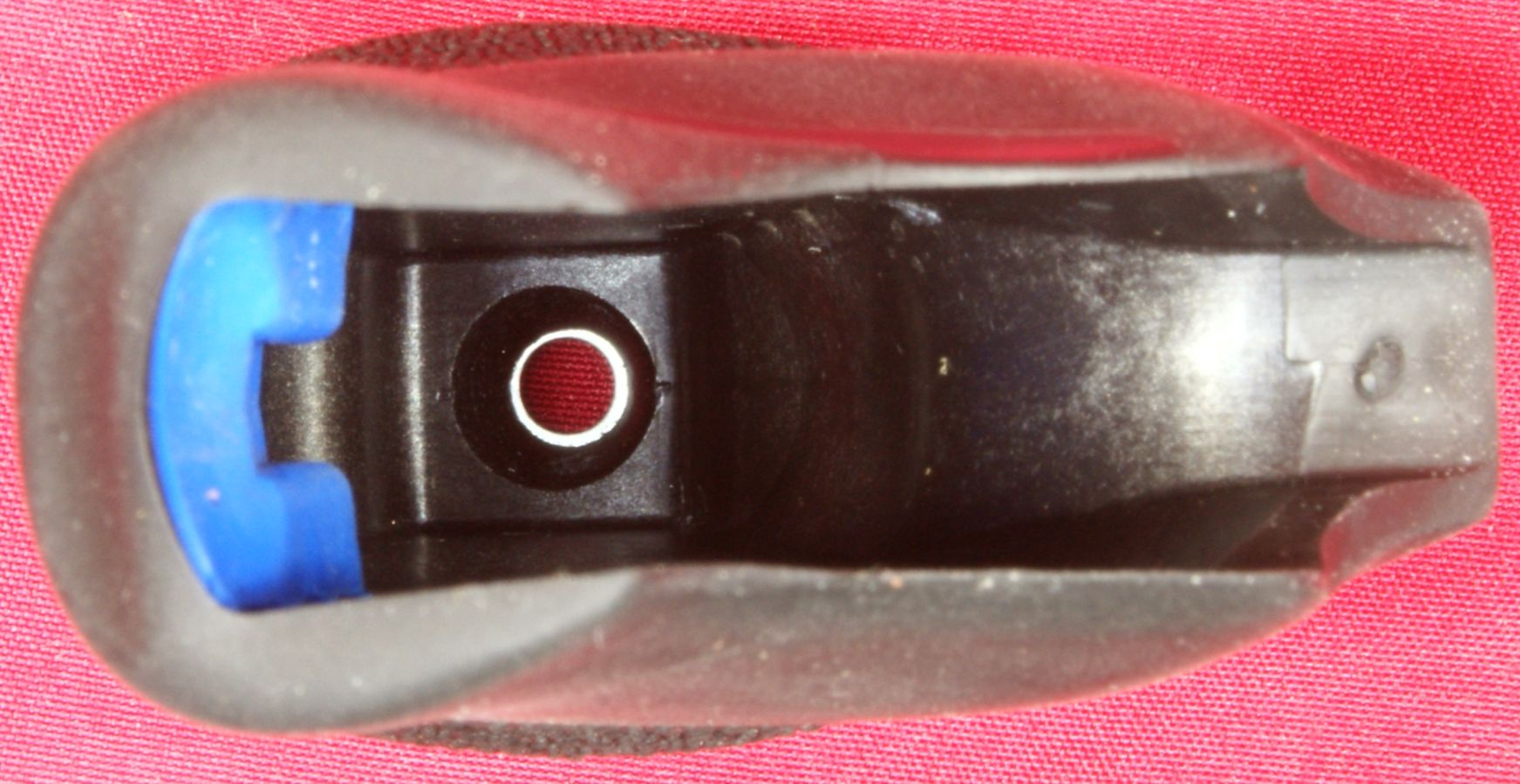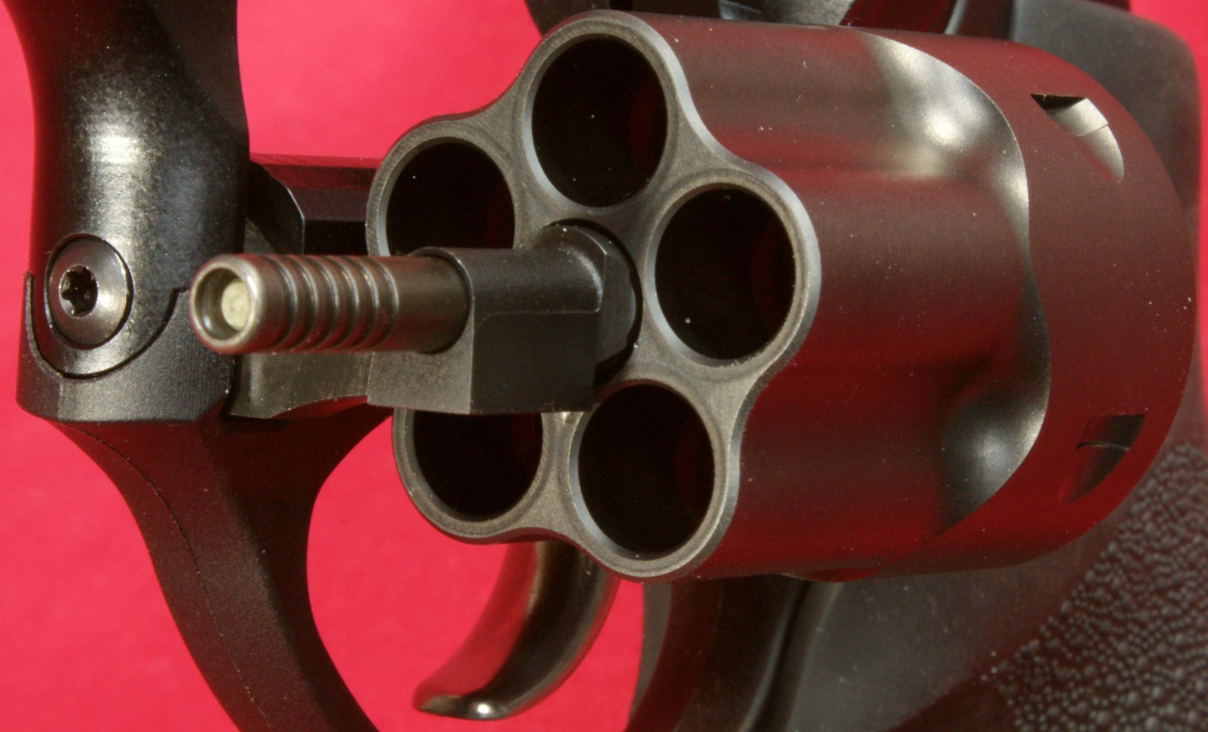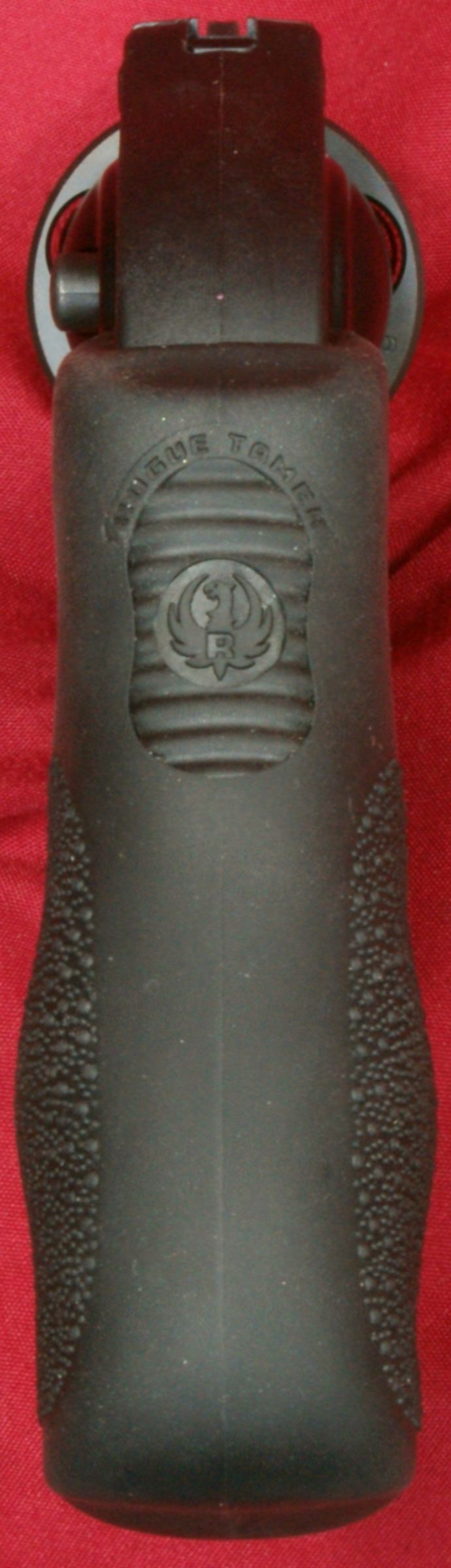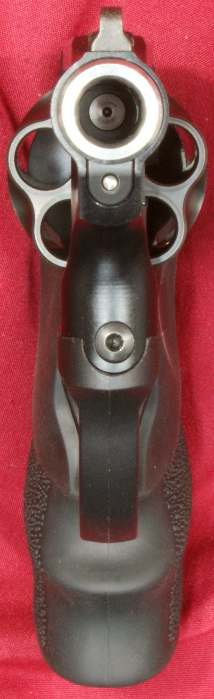 Figure 36 The bottom of the grip has a stainless steel washer molded into the grip to provide a bearing surface for the grip screw. These next two photos give you a look at a loaded cylinder with the cylinder open and also a look from the front showing the front of the bullets in the chambers.
