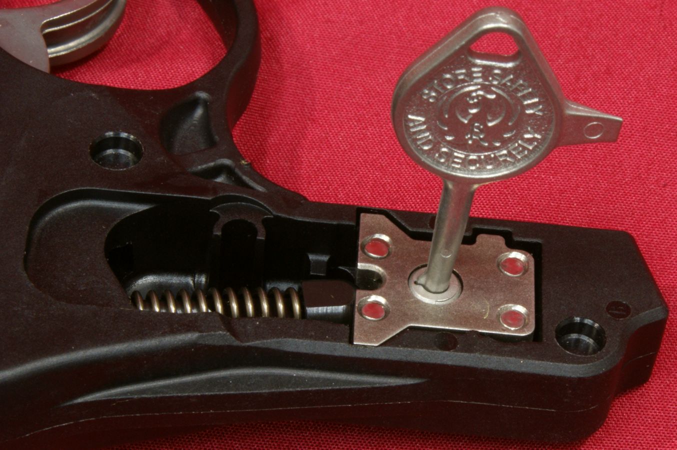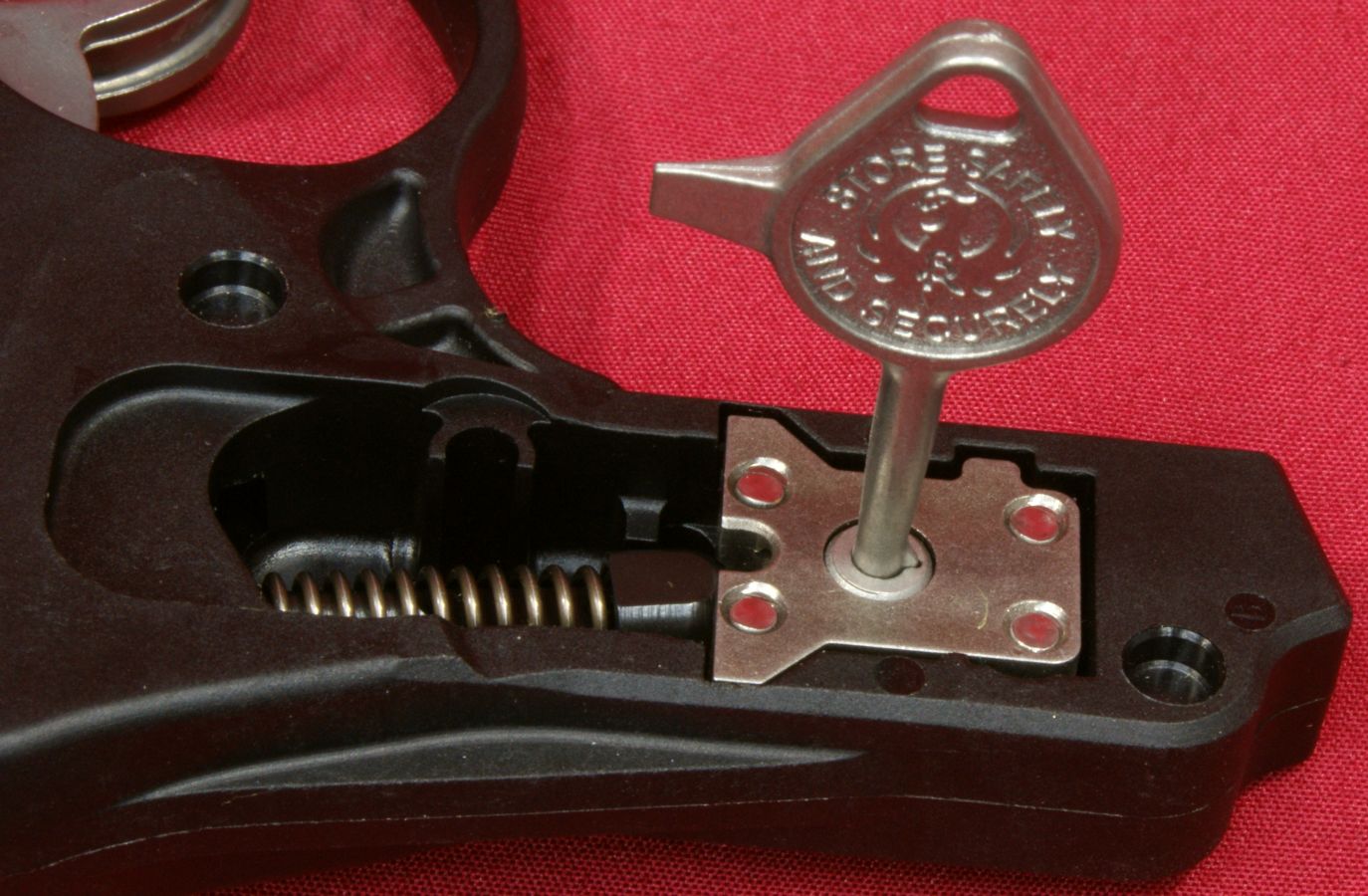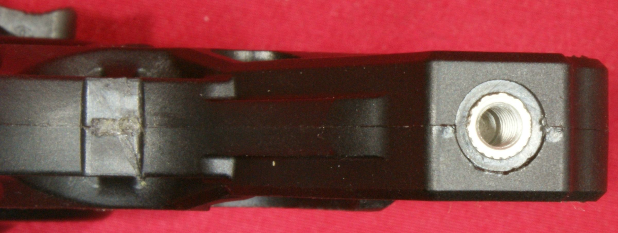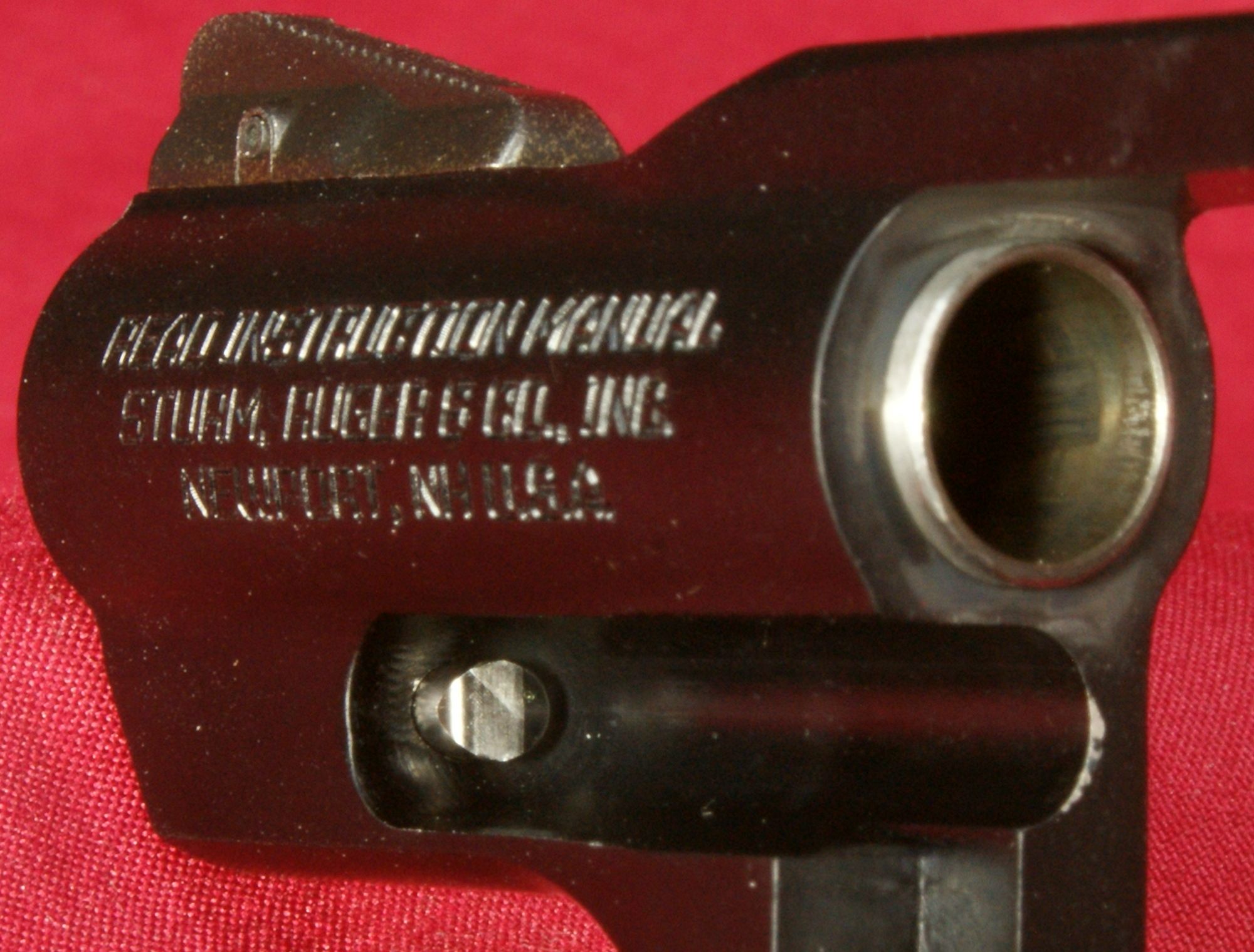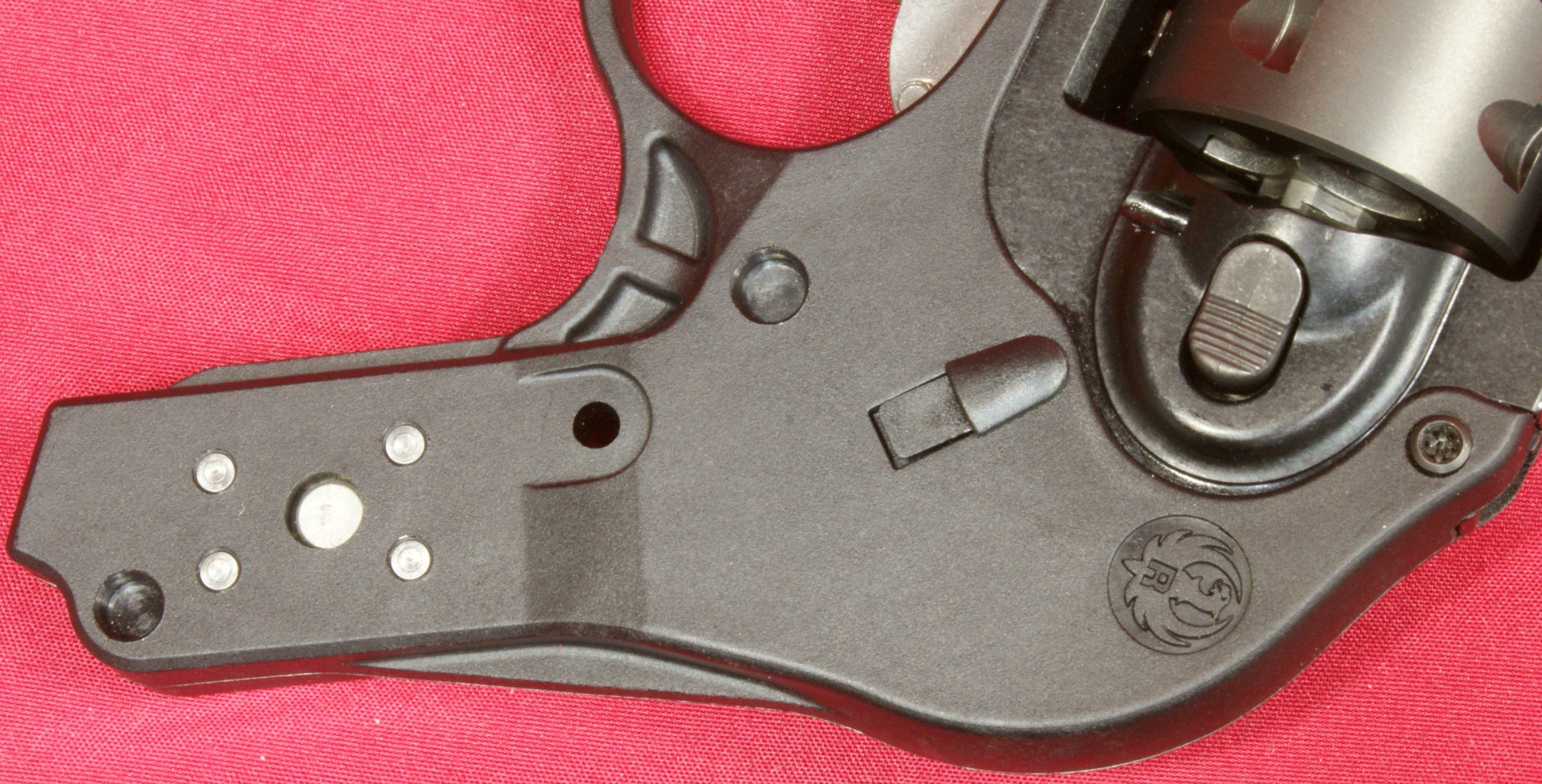 Figure 36 The bottom of the grip has a stainless steel washer molded into the grip to provide a bearing surface for the grip screw. These next two photos give you a look at a loaded cylinder with the cylinder open and also a look from the front showing the front of the bullets in the chambers.