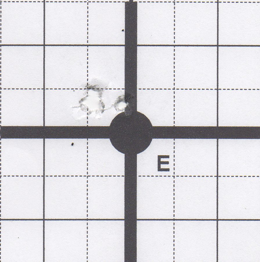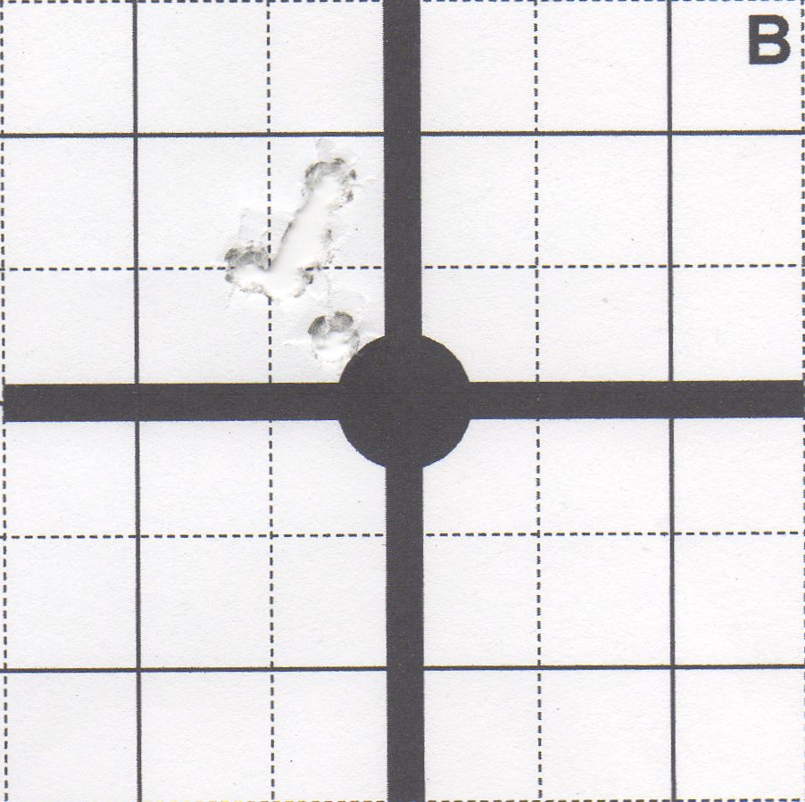 These next two groups are the best ones I shot with the CCI and Norma ammunition. Clearly all my groups were not this good, but I feel this is an indication of what this pistol can do with the right ammunition and shooter combination. Overall I had a 0.81" group average from twenty five 5-shot groups excluding the Federal Premium that either it or I didn't shoot very well. To sum it up, I was very pleased with the accuracy capability of this pistol which is consistent with the reputation of the Ruger Target/Hunter Mark Series pistols. Figure 4 - 0.36" Group CCI at 25 yds. Figure 5 - 0.57" Group Norma