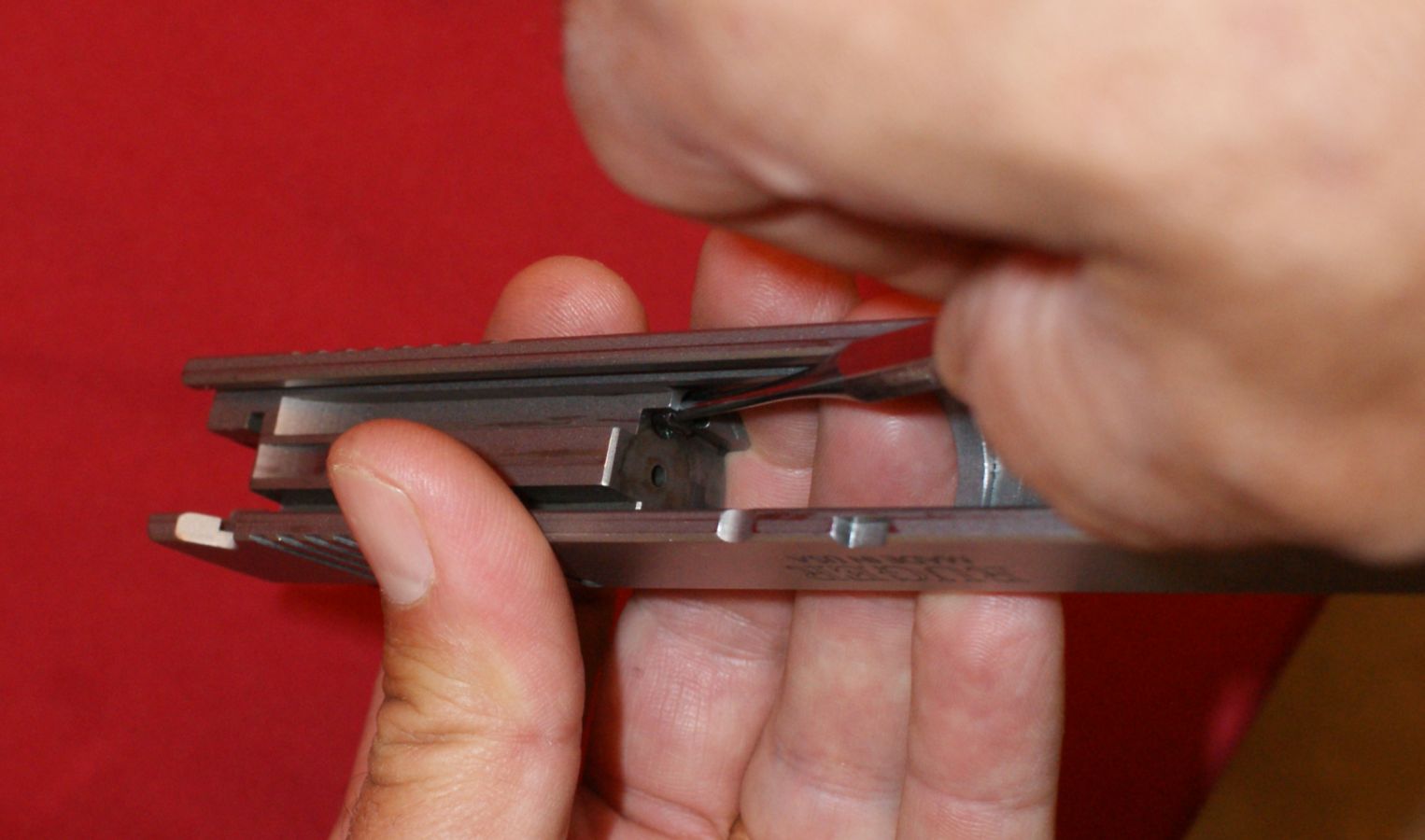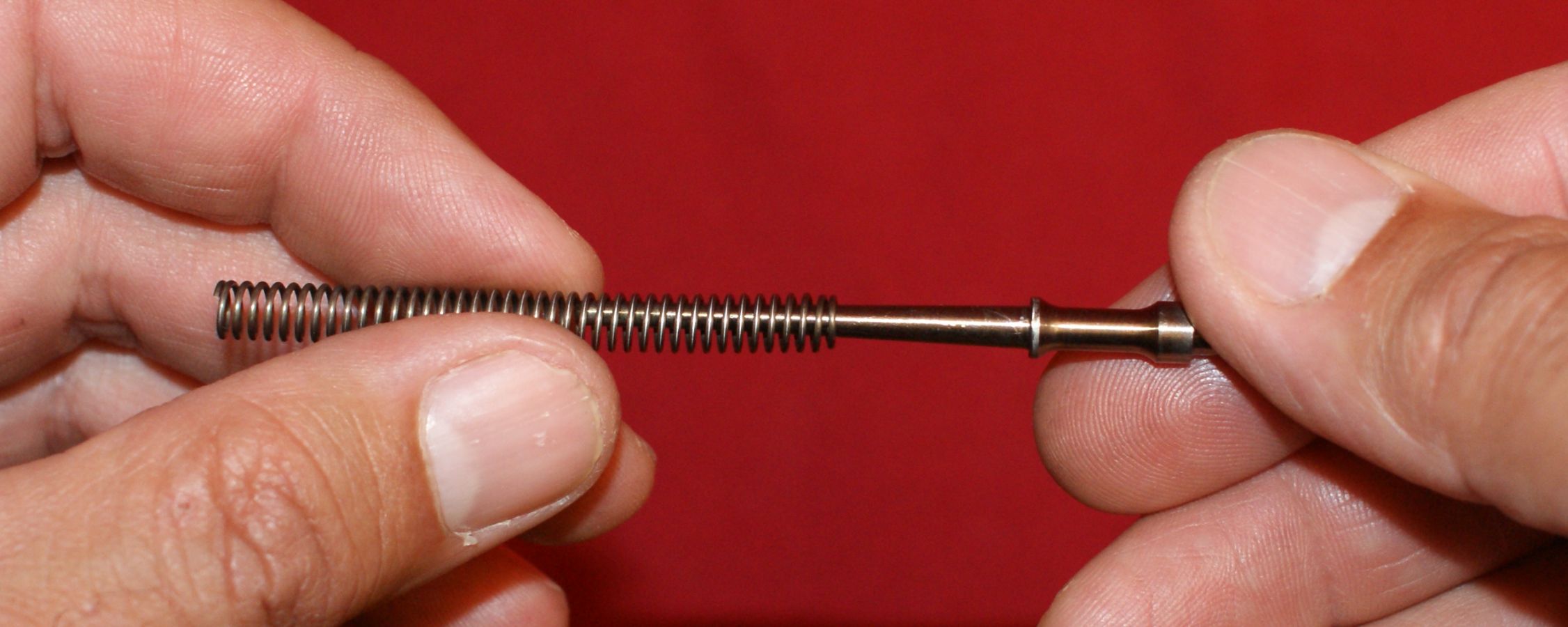 Step 1 - Remove Magazine Press the magazine catch and remove the magazine from the pistol. Step 2 - Verify Unloaded Pull the slide to the rear and lock open to verify that the pistol is unloaded. Step 3 - Release Slide Pull the slide to the rear and allow it to go fully forward. My personal preference for disassembly after I have confirmed that the pistol is unloaded is to leave the hammer cocked and flip the thumb safety up. Step 4 - Rotate Barrel Bushing and Release Spring Force Ruger provides a polymer wrench to assist in rotating the barrel bushing. When the pistol was new (out of the box), this wrench did help significantly when rotating the bushing, but after a session at the range, I was able to push down on the recoil spring retainer and rotate the bushing by hand. When using the wrench, you will push down on the recoil spring retainer and rotate the barrel bushing slightly clockwise as shown below. I prefer not to fully rotate the bushing with the wrench because I feel I have more control over the spring force trying to push the recoil spring retainer out by using my bare thumb. With my thumb over the end of the retainer, I was able to rotate the bushing and then release the pressure off the recoil spring. Step 5 - Remove Retainer and Spring This step could actually be done later, but I like to go ahead and get the recoil spring retainer and spring out of the way. The retainer easily slides off of the spring, but you may need to pull the spring to get the spring to slide of the guide rod. If you are uncomfortable pulling on the spring, you can leave the spring in place and remove the guide rod and spring as an assembly once the slide is removed. Steps 6 & 7 - Align Takedown Notch With the hammer fully cocked and the thumb safety down (off), pull the slide rearward to position the takedown notch in the slide over the slide stop as shown below. Step 8 - Remove Slide Stop With the slide aligned, you can press on the head of the slide stop pin on the right side of the frame to get the slide stop body to push away from the left side of the frame. Then you can pull the slide stop out of the frame on the left side. Step 9 - Remove Slide You then apply pressure forward on the slide while not pressing the grip safety to remove the slide. When removing the slide, I like to turn the pistol upside down to ensure that the guide rod doesn't fall out of the slide. Step 10 - Remove Guide Rod If you removed the spring earlier, the guide rod can be easily lifted off the barrel. If the spring is still attached, you can slide the guide rod and spring to the rear out of the slide. Step 11 - Remove Barrel Busing To remove the barrel bushing, rotate the bushing counterclockwise and then the bushing can be pulled forward out of the slide. Step 12 - Remove Barrel To remove the barrel, flip the barrel link to the forward position and then the barrel can slide out of the front of the slide. Step 13 - Fully Field Stripped The photo below shows a fully field stripped SR1911 pistol. One thing to note is that in my photo (as compared to the Instruction Manual), the recoil spring is not on the guide rod. Notice that each end of the recoil spring is slightly different and when you reassemble the pistol you need to make sure the spring is oriented as shown below when you place it over the guide rod. Overall I would say that disassembly to this level is simple with the hardest part being rotating the barrel bushing and releasing the pressure on the recoil spring. Extended Disassembly Since the 1911 pistol platform has been around for over 100 years and I'm sure there are those who would want to see more, it didn't seem right for me to stop the disassembly process where Ruger stopped in their Instruction Manual. The below steps show the rest of the disassembly of the Ruger SR1911 Pistol, but keep in mind that Ruger states "Never disassemble your handgun beyond the field stripping process outlined in this manual" which is shown above. Slide Disassembly To remove the firing pin, spring and extractor, you will first need to remove the firing pin stop (A) which is the black part shown below that surrounds the rear end of the firing pin. By taking a punch, you can press the firing pin forward and push down slightly on the firing pin stop so that it holds the firing pin in the forward position. Position a finger over the end of the firing pin area to prevent the firing pin from shooting across the room and pull the firing pin stop down and out of the slide. You can then release the spring force on the firing pin and remove the firing pin from the slide. Although the firing pin spring is snug around the base of the firing pin, the spring can be pulled off the firing pin. Using a punch, press rearward on the front end of the extractor and the extractor will begin to move rearward. Once the extractor is protruding from the rear of the slide, you can pull the extractor out of the slide by hand. Removing these parts is very simple and there is little risk that you would damage them during removal or get something wrong on re-assembly. With these parts removed, you can perform a more thorough cleaning of the slide and the components. Grip Removal Grip removal is easily done by removing the four Allen head screws holding the two grip panels in place. Removal of Frame Components With the hammer in the fully cocked position, rotate the thumb safety up to a position shown in the photo below and press on the head of the pin on the opposite side of the frame. Using a combination of pressing on the head of the pin and wiggling/pulling on the thumb safety, it will start to move out of the frame. Once you get it moved to a position as shown below, you should stop and reposition your hands to catch the safety lock plunger and spring. With your hand behind the frame to catch the safety lock plunger and spring, continue pulling the thumb safety out of the frame. On this SR1911, the safety lock plunger and spring didn't shoot out, but ins