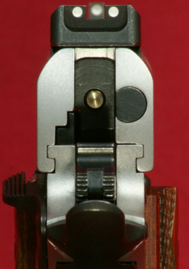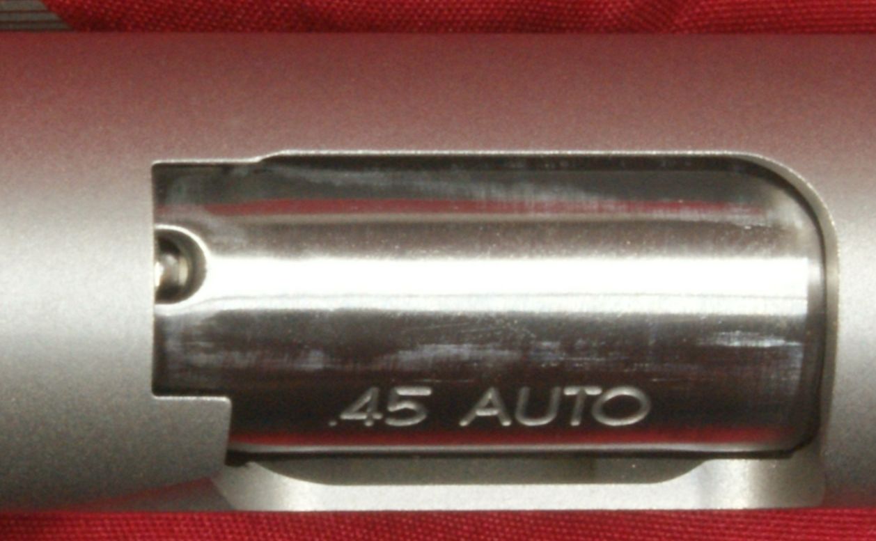 For those concerned about the lack of a firing pin safety, Ruger included a titanium firing pin and heavy firing pin spring. This design is such that the reduced mass of the firing pin and the increased spring weight prevents the firing pin from making contact with a cartridge if the pistol were dropped on it's muzzle. These next four photos show some isometric views of the Ruger SR1911CMD Pistol. The combination of the low glare stainless steel finish, the black accents on the sights, beaver tail, thumb safety, slide stop & magazine catch, and the wood grips makes for an attractive pistol (my opinion). The Ruger SR1911CMD measured about 1.39" in width across the widest point which is from the right side grip to the left side thumb safety. This was slightly more than my SR1911 and more than the specification width of 1.34", so there must be some small amounts of variability in the grip panel thickness. The SR1911CMD measured 5.45" in height with no magazine installed and 7.89" in length. From the tip of the barrel to the breach face, the barrel measured about 4.30". The right side is marked with the Ruger eagle logo, "PRESCOTT AZ", the "RUGER" name, basic model number "SR1911" and serial number, along with the caliber ".45 AUTO" shown on the barrel. The bottom of the frame has the warning "READ INSTRUCTION MANUAL BEFORE USING FIREARM". It was kind of Ruger to put this warning in a very non obvious location. The left side of the slide is marked with "RUGER" and "MADE IN USA". The Ruger SR1911CMD Pistol with magazine weighed in at 36.50 ounces which is about 2.75 ounces lighter than the SR1911. Fully loaded with eight rounds (7+1) of Remington HD Ultimate Home Defense 230 gr BJHP, the pistol weighs in at 42.50 ounces. Starting with the front of the pistol, the SR1911CMD had a good barrel "bushing to slide" and "barrel bushing to barrel" fit. There was enough looseness to allow the pistol to function properly, yet when the barrel was locked up, I couldn't detect any movement of the barrel with respect to the slide and bushing end. I also checked this with the recoil spring removed and could only detect a hint of movement. With the recoil spring removed, I was not able to detect any vertical looseness at the rear of the barrel (chamber end). Next I reinstalled the recoil spring and did a press test on the rear of the barrel to check for movement. I was not able to detect any vertical looseness. The stainless steel barrel comes with a 6 groove 1:16" right hand twist. The Ruger SR1911 comes with a standard white dot front sight as shown below. In this photo, also notice the stainless matte finish that covers both the slide and frame. These next two photos show the visual inspection port with and without a cartridge in the chamber. Although I like the raised bar showing that a round is chambered on some of the other Ruger SR pistols, I'm glad to see Ruger didn't go that route on their SR1911. The SR1911CMD oversized ejection port is similar to many 1911 pistols on the market today with it having a "lowered and flared" port which should assist with the ejection of the spent case from the pistol. This commander-style version also has a slightly relieved (cut out) area on the forward side that was not on my full size pistol. The SR1911CMD comes with a Novak LoMount Carry rear sight which is adjustable in windage only. These next two photos give you a good idea on the sight picture of this three dot sight system. Personally, I'm a fan of the Novak sights and this is my preferred sight configuration. Also notice the fit of the slide to frame. There was a slight amount of looseness of the slide at the rear, but overall I would say it seemed like a decent fit with the gaps between the slide and frame being uniform. To adjust this sight, loosen the set screw and adjust the sight in the direction you want your group to move on the target. The photo below shows about how much gap you have on each side of the front sight when extended at arms length. These next three photos show the rounded skeletonized hammer in it's three positions which are decocked, half cocked and cocked. The skeletonized feature makes the hammer light weight and provides faster cycling (according to Ruger). From an engineering perspective, I agree it would be faster cycling, but from a practical perspective, I wonder how much. The half cocked position provides a safety in the event your thumb slips when cocking the hammer. If your thumb slipped, the hammer would only fall to the half cocked position. These next three photos should give you a good look a the back of the pistol. The black accents on the rear sight, firing pin stop, ejector, extractor, hammer, thumb safety, grip safety and mainspring housing are a nice touch. You can see that the thumb safety is right hand only. The grip safety has a ridged speed bump and the mainspring housing has a textured checkered pattern on the backstrap surface. The SR1911CMD has an extended manual thumb safety. These next two photos show the safety in the lever down, safety off, "fire" position and then in the lever up, safety on, "safe" position. The hammer must be fully cocked to move the manual thumb safety to the lever up (safety on) position. The trigger on the Ruger SR1911CMD is a light weight aluminum skeletonized trigger with an adjustable over-travel stop. The trigger pull on this pistol measured an average of 4.7 pounds based on ten pulls from a Lyman digital trigger pull scale. I was not able to detect any perceivable creep and the trigger seemed to be crisp. You can also see in the photo below the extended magazine release. The SR1911CMD comes with a set of checkered Rosewood grip panels with the Ruger logo inlayed into the center of the grip. As mentioned already, the pistol includes a steel extended beavertail grip safety with a ridged speed bump. I view a speed bump safety as a good feature because I tend to have a high grip hold and the bump helps to ensures I disengage the safe
