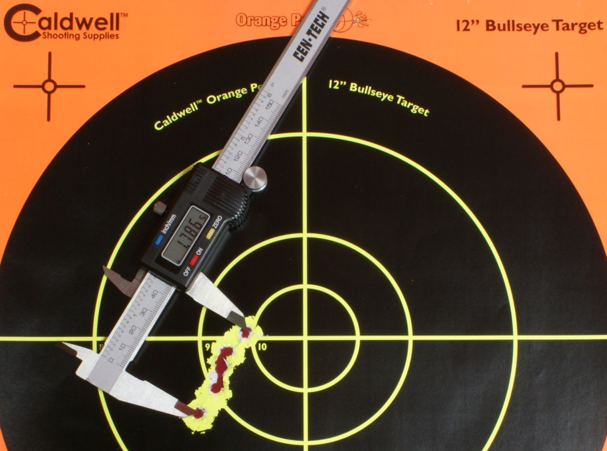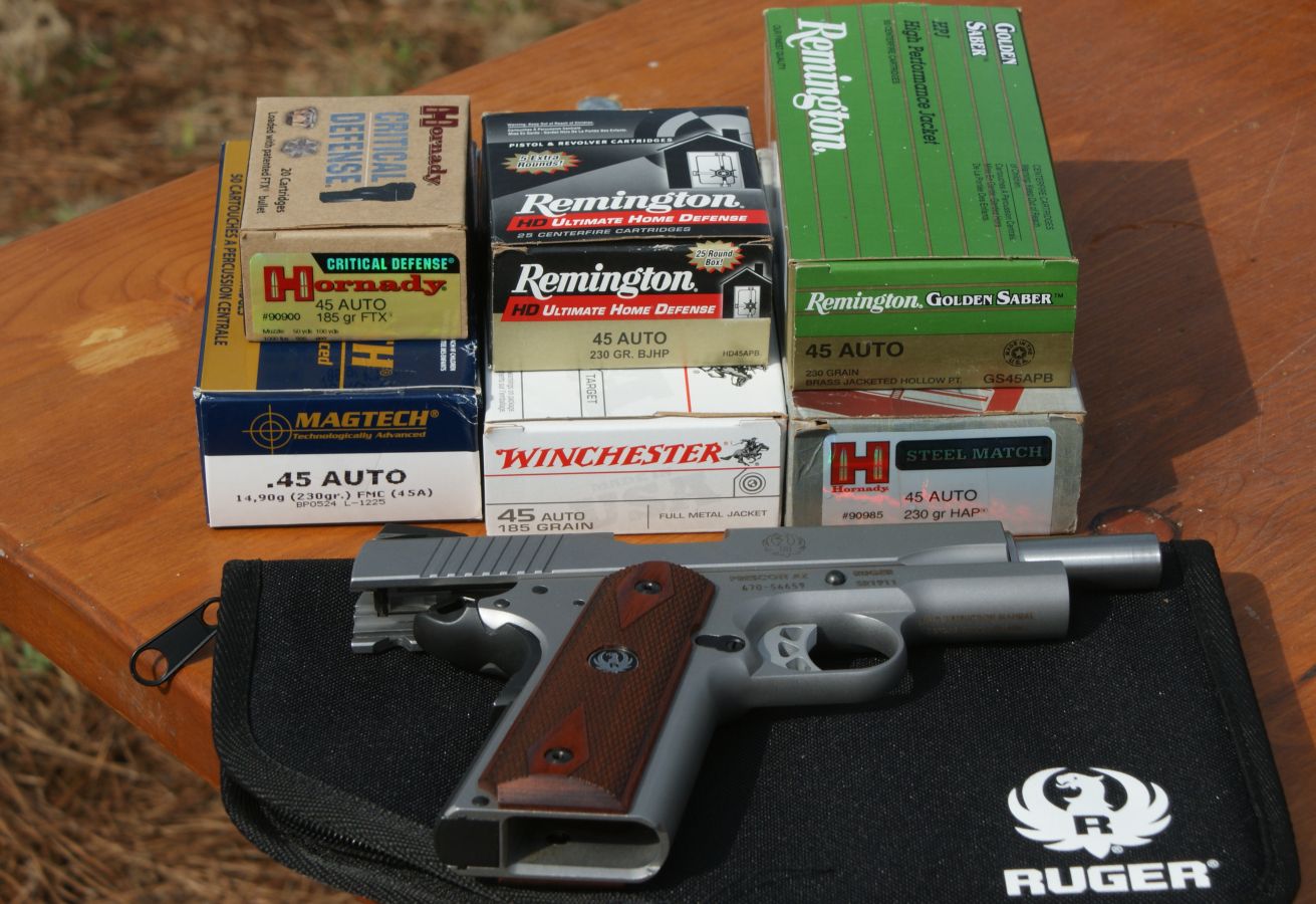 Unfortunately, when it came time to do my range testing, I was stuck with having to pull all the ammo from my limited stock of .45 Auto ammunition on hand because purchasing ammunition in my area was generally limited to "in-store" range use because of the recent runs on ammunition. Also, because I didn't have an extensive amount, I limited my number of groups knowing that I would need some of this ammunition in the near future to hopefully checkout Ruger's new SR45 pistol. At least the selection included several different practice (FMJ) and defensive types of ammunition. For accuracy testing, all the groups were shot from a bench at 25 yards. I was trying out a new rest a buddy loaned me and I never got into a position that I felt comfortable with when shooting the groups. Because of this, I seemed to have regular flyers so I decided to measure my group sizes based on the closest 4 out of 5 shots. Overall I was pleased that out of the 16 groups measured, I had a total average of all 16 groups of 2.54".