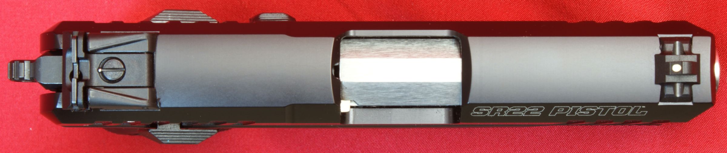 This next series of photos shows the as received condition of the pistol which was great and what you would expect for a new firearm. In Part 3 of the review I discuss in detail the external features of the Ruger SR22 Pistol so consider these photos a snapshot of what is yet to come. Also keep in mind that you can click on nearly any photo in my reviews to bring up a high resolution photo showing greater detail. Note that these photos are shown in the "as received" configuration which has the flat magazine floor plate and the smaller palm swell interchangeable grip sleeve installed. I decided to go ahead and show photos of the soft case in this part of the review. The case has a relatively thin padding, but I can see using this case to hold the SR22 Pistol when I pack up and head to the range.