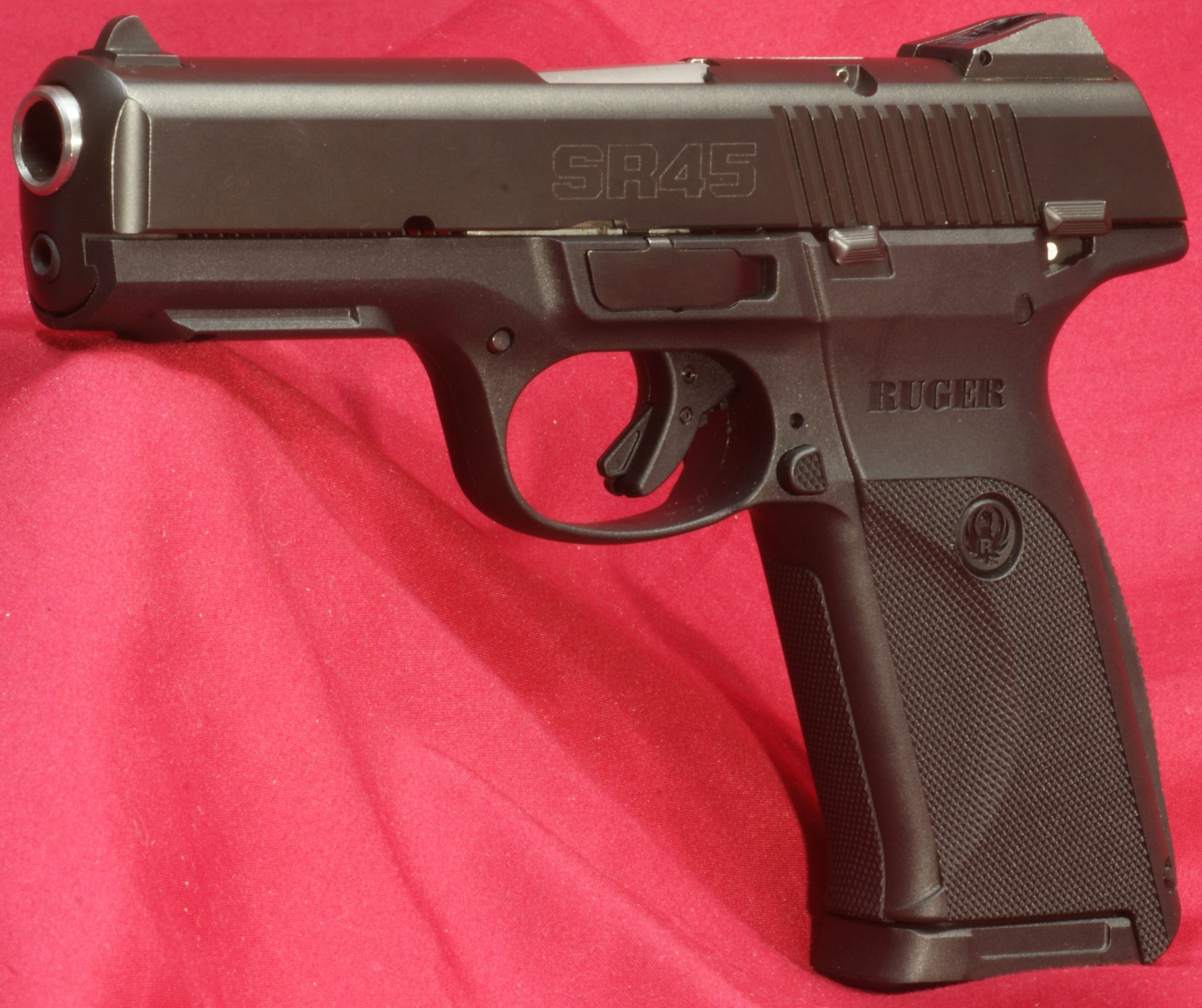 Ruger SR45 Review Once again, this year Ruger expands their offerings of the "SR" pistol line by adding the new SR45 to the mix. This pistol, chambered .45 Auto, keeps the same style and feel as their SR9 and SR40 pistols, but does this in the popular .45 Auto caliber which should appeal to many shooters. Just like their other SR pistols, the SR45 is offered in both the black nitride and brushed stainless steel slide finishes. If all goes well with the SR45 pistol, and based on the success of the other SR offerings, my guess is that we can expect to see an SR45c (compact version) in the future. Figure 1 - Black Nitride Finish