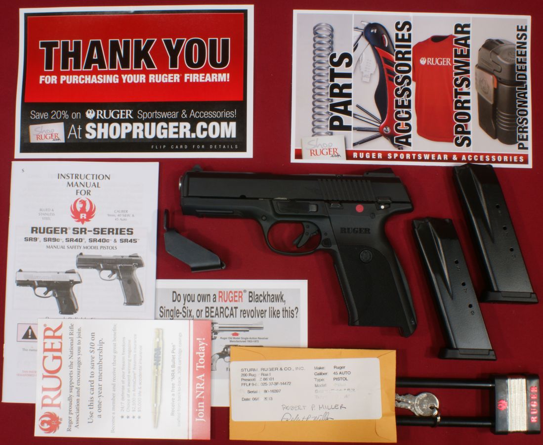 Ruger SR45 Review In this part of my SR45 review, I show the contents of the box along with some photos of the "as received" condition of the SR45 pistol. The SR45 comes packaged in a hard case as shown below which is similar to the other SR style centerfire pistols.
