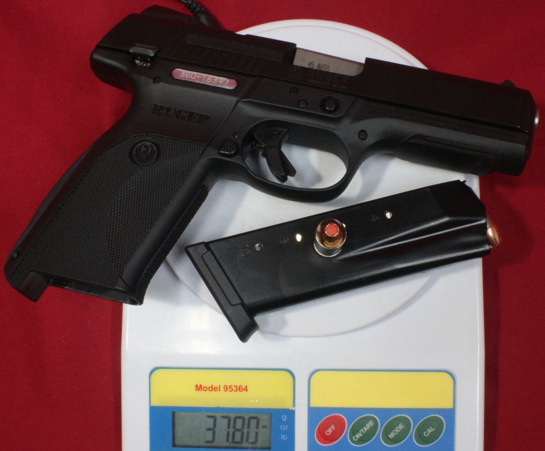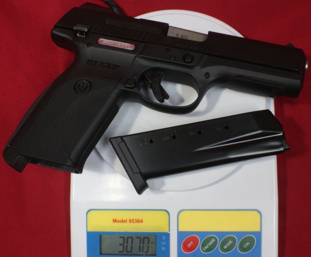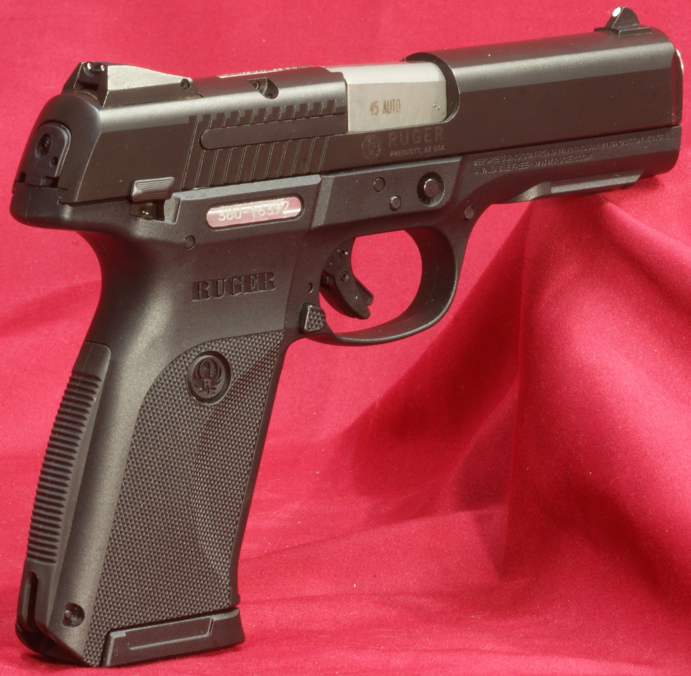 Ruger SR45 Review In this part of my SR45 Pistol review, I take a close look at the external and operational features of the SR45 Pistol which is chambered in the 45 Auto caliber. Not counting the magazines and magazine loading tools, the Instruction Manual identifies 60 parts that make up the SR45. Of these 60 parts, only 14 parts are different from the SR9 and 11 parts are different from the SR40. This gives you a good idea on the commonality of these three pistols. At a quick glance, you can see that the SR 45 has a polymer frame, stainless steel barrel and black finished slide.