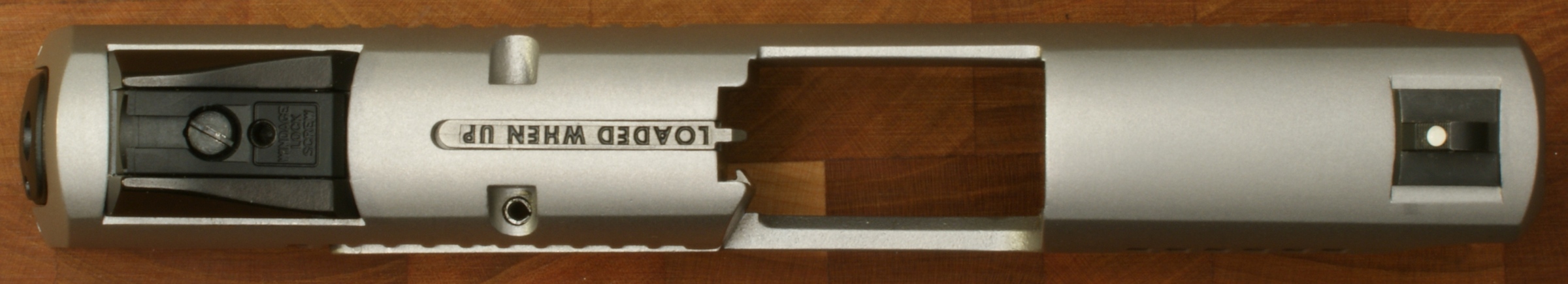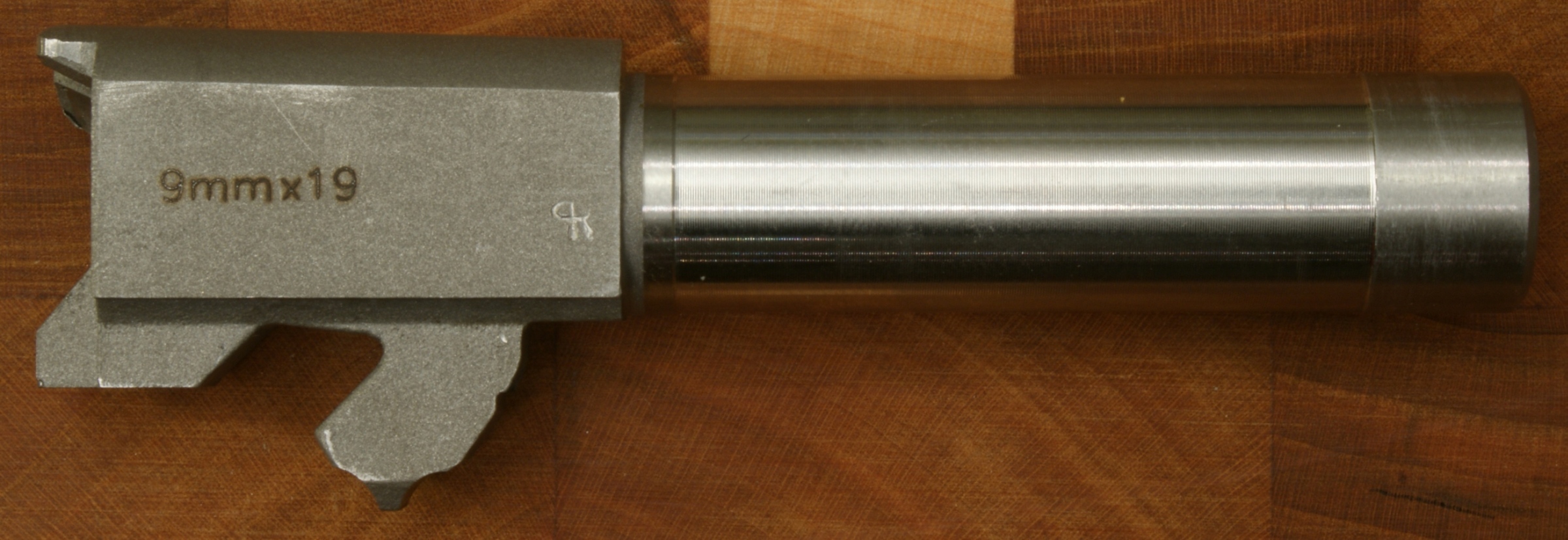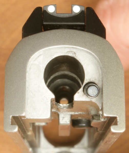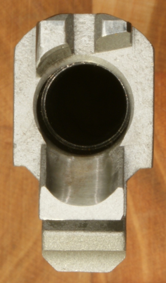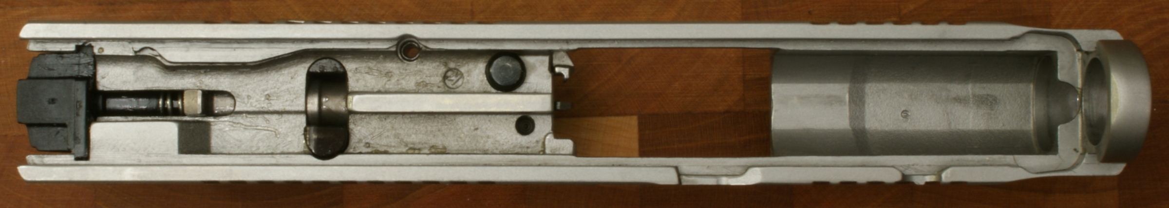 Additional Disassembly If at some point you would like to thoroughly clean your striker assembly and striker cavity in your slide, you can remove the striker assembly by following these steps. There are three key components you should be aware of when doing this; A - Striker Blocker, B - Magazine Disconnect, and C - Striker Key. First you press the Striker Blocker (A) and Magazine Disconnect (B) at the same time to allow the Striker Key (C) to move forward to the position shown below. Now you can remove the Striker Cover (black nylon piece at the end of the slide). Using a small punch, press down on the Striker Cover Plunger and push the Striker Cover out of the slots at the rear of the slide. Next, press down on the Magazine Disconnect (B) and you can remove the Striker Assembly from the slide. As a note, the right lip of the magazine presses the Magazine Disconnect up when the slide is forward. If a magazine is not installed, the disconnect is down which blocks the travel of the striker and will not let the striker impact the cartridge, even though the pistol seems to fire when you pull the trigger. You can then remove the Magazine Disconnect by pulling it out of the slot in the slide. These pieces are shown below. This last photo shows a view looking down the striker cavity in the slide. Reassembly is basically the reverse of these steps. Barrel The barrel on the Ruger SR9c measures 3.50". Since barrel length is measured from the end of the barrel to the breech face, the barrel length is the total length of the part below. The barrel is an investment casting which is made from SAE 410 (or UNS4100) stainless steel in Ruger's Pine Tree Casting facility. I have read several other reviews that talk about castings in a negative light. A casting does not always equal inferior quality or durability. The F-22 aircraft, the most advanced aircraft in the world, "incorporated 61 castings on the F-22; many of them utilized in critical structural applications." You can read this technical paper on the F-22 here. Another thing to remember is that Ruger has it's own casting facility and has been in the castings business since 1963. Ruger is not some low budget import company that was low bid on a casting contract. My last point is that Ruger is responsible and liable for their products. I know everyone wants to make a profit, but I don't think Ruger would take on the risk of putting an inferior critical component in their pistol. The photos below show the barrel from all sides. The barrel is a casting and the critical areas get final machined into the configuration shown below. This machining is clearly seen by looking at the exterior barrel surface (shiny). Also, each barrel gets proof tested and you can see the proof mark "R" stamped into the barrel in the photo below. I have read several other reviews that comment negatively on the matte finish of the exposed barrel chamber area. My impression is that the surface finish is better matte than polished because the matte finish more closely matches the upper surface of the slide. I also would not consider this to be a true negative aspect of the pistol, but instead just a matter of personal preference. Slide Assembly Just like the barrel, the slide is an investment casting (see above for the reasons not to worry) and is made from 415 stainless steel which is a special proprietary blend that is somewhere between 410 and 420 stainless steel. The exterior had a very nice look and finish. In certain areas on the interior, you could tell there was a certain roughness associated with a casting, but nothing I would consider to be negative on the quality of this pistol. Also, I could tell that critical areas were final machined to maintain critical interface features (i.e. slide slots, barrel contact areas, breech face, and I'm sure more). You can see for yourself by looking at the photos below. Also note that I didn't clean the lubricant off the interior surface of the pistol before taking the photos. This may cause it to look rougher that it actually was in some areas. Frame Assembly The pistol frame is manufactured from glass-filled nylon. Glass-filled is a good thing because this increases structural and impact strength along with rigidity of the frame. There are lots of photos below to show the details of this assembly. If I were you, I would take Ruger's recommendation and not do any more disassembly. After you study the interior mechanism, they are actually very simple, but again I don't recommend any further disassembly. I'm not going to talk about every detailed feature of this assembly, but I will cover some items I think are significant. In the photo below, you can see that Ruger has a metallic Camblock (1). This is a high stress and high wear area so the metallic part will be more durable than just the nylon frame. This block is also pinned in place by three different pins spread apart which gives it an even stronger attachment footprint to the frame. In the photo below you can see the Slide Stop (2). By inserting a magazine, you will see how the slide stop moves up when the magazine follower comes in contact with the stop. The Ejector (3) is shown in the down position and you can also see the Trigger Bar (4). If you look closely, you can see how the manual safety blocks the Trigger Bar from moving back when the safety is engaged. If you hold the trigger in the forward position and pull back on the Inner Trigger (5) (trigger safety), by looking at this frame from the view below, you can see how the Inner Trigger blocks the Outer Trigger (normal trigger) from being pulled by contacting the frame unless the Inner Trigger is pulled. You can also press the Magazine Latch Button and watch how the Magazine Latch (6) moves to the latch and unlatched positions.