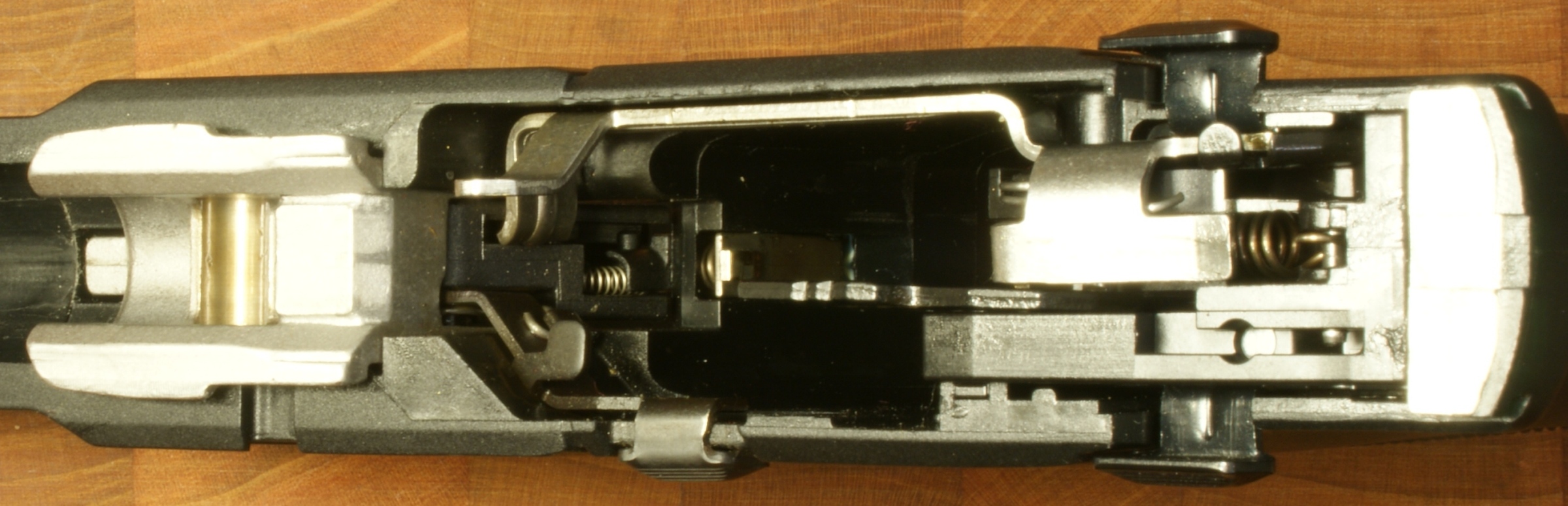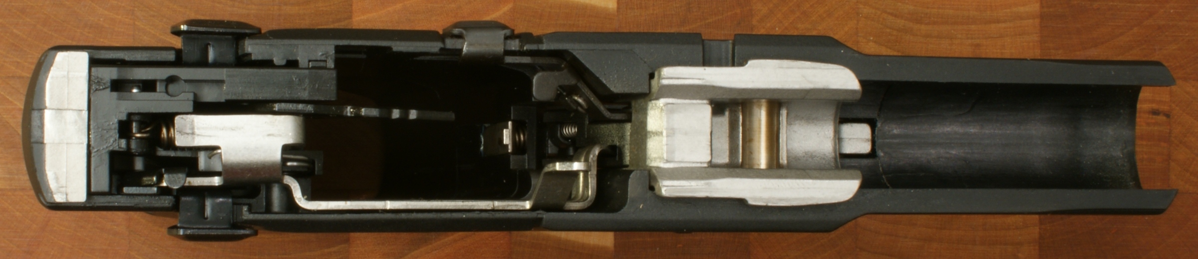 Overall, disassembly is relative simple and if you take the time to study the trigger and safety mechanisms, you will find they are simple also. I still wouldn't recommend you disassemble the frame assembly unless you are an expert with working on guns. At this point, I still have not shot the pistol at the range, but have dry fired it (magazine in per instruction manual) many times and have disassembled/reassembled it over a dozen times. It seems very tight and stiff like a new gun, but it also seems to be loosening up a little. You can navigate to other parts of this review using the links below.