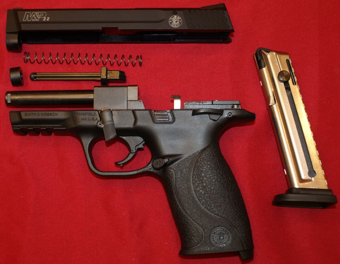 Smith & Wesson M&P22 Review In this part of the review I'm going to cover disassembly of the Smith & Wesson M&P22 Pistol. I'm going to follow the basic steps outlined in the Safety & Instruction Manual for the first half of this review. S&W refers to these as steps for "Field Stripping". Although these steps are fairly simple and I may show them in detail, you should always refer to your Safety & Instruction Manual as the official source for any information related to the safety, operation and care of any firearm. In the second half of the review, I show the barrel removal method similar to the Walther P22 Pistol. Throughout this review, you can click on any photo to bring up a higher resolution image showing the details even better.