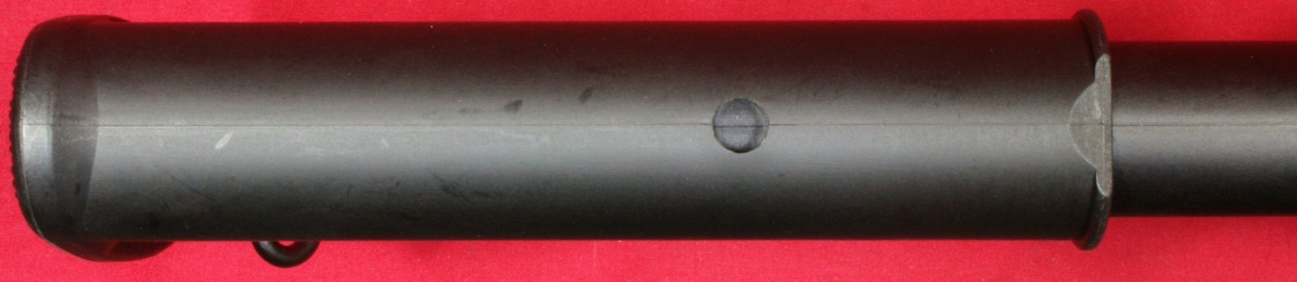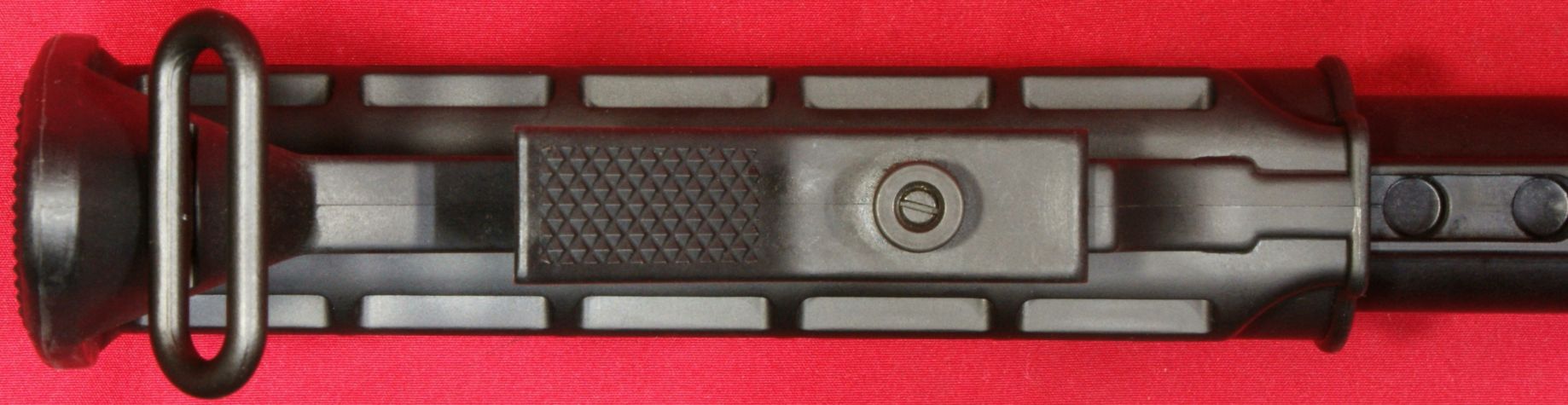 Figure 5 These next photos are the same from Part 2 and I have included them so I have a complete set in this part of the review for our reference. The overall width of the rifle is about 2.2" measured across the bolt release and shell deflector. The overall height of the rifle is about 7.1" excluding the sights and the overall length varies from 31.75" to 35.0" depending on the position of the buttstock. This measured length varied from the specifications of 30.70" to 33.75" which I feel is an error on S&W's part. Overall, I feel that S&W has done a nice job with the look of their rifle and attempt to match a standard AR's configuration. The rifle weighed in at 4 pounds 7.6 ounces (4.5 pounds) without magazine and 4 pounds 13.2 ounces (4.8 pounds) with an empty 25-round magazine included. This is slightly less than the 5 pounds stated in the specification which may have included the original heavier metallic sights. Starting at the front... the barrel comes with a fairly standard A2 style steel flash hider with six slot around the perimeter. The flash hider does not have a closed bottom like standard A2 style flash hiders, but with this rifle being chambered in .22LR, the true need for a flash hider is a little questionable. I feel the greatest advantages of having one are aesthetics and that it can function as a thread protector when not using a sound suppressor. The flash hider comes with 3/4" wrench flat for removing and installing if needed. The portion of the barrel that extends past the forend measures about 6.56" in length and the barrel has an outside diameter of 0.67". The barrel is made from carbon steel and the finish is a black matte and there are no visible markings indicating caliber and twist. As already mentioned though, the barrel is chambered for .22LR and has a 1:15" RH twist rate. The actual barrel length measured 16.5" in length as advertised. At the front of the handguard is a plastic insert that touches both the carbon steel barrel and polymer handguard. This means that the barrel is not free floated. I don't see this as a big issue on this rimfire rifle because it is not intended to be a completion target rifle and has a proven track record of good performance. One of the new features on this "Sport" rifle is that it comes with a set of polymer Magpul MBUS sights. I feel these sights are a great match-up with this rifle; quality Magpul polymer construction, light weight, reasonable cost. The Magpul MBUS front sight is shown below in the deployed (up) position. The front sight is adjustable for elevation only and the rifle comes with a front sight adjustment tool. The specs on this sight are shown below and were taken from the Magpul website.