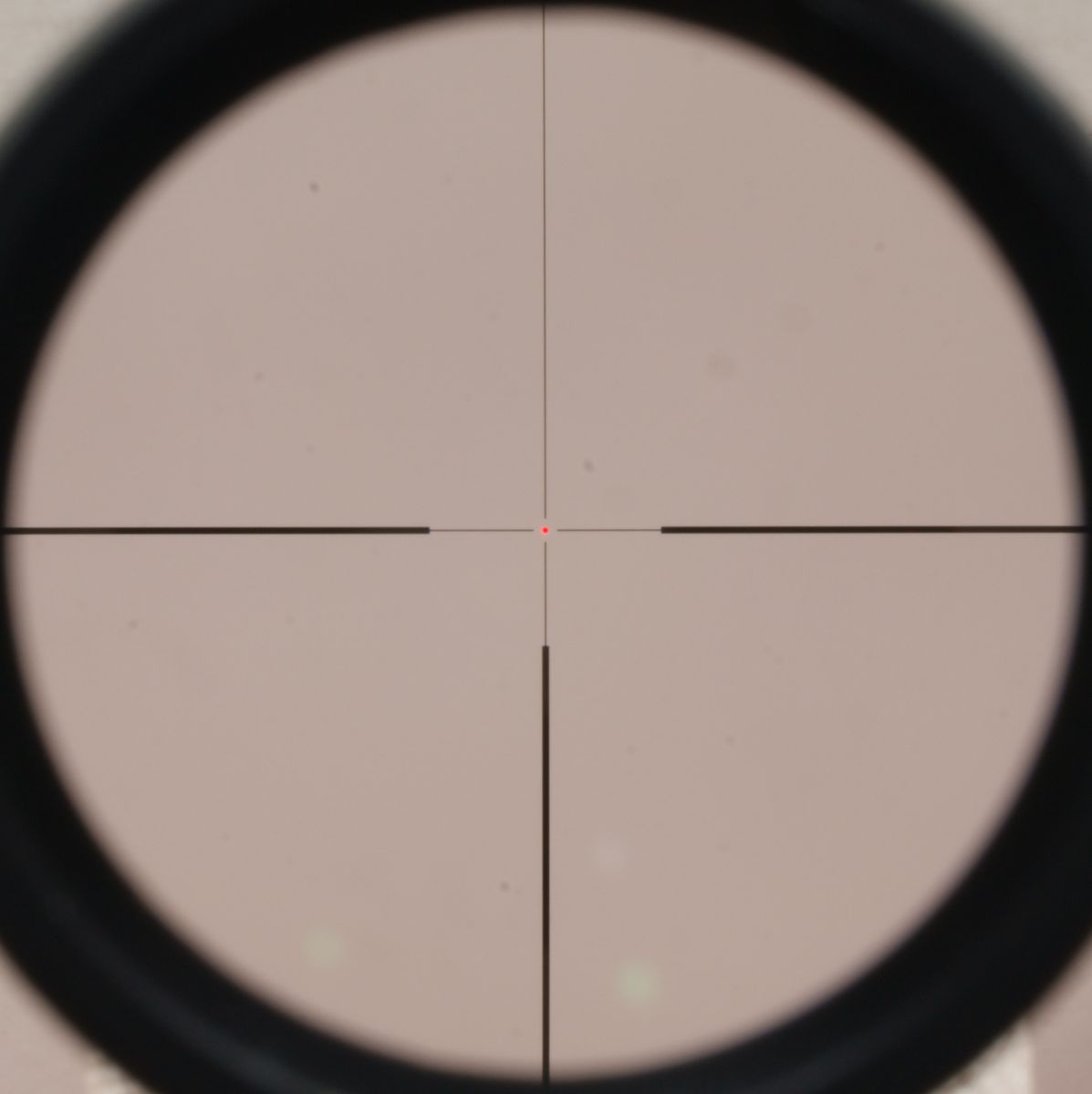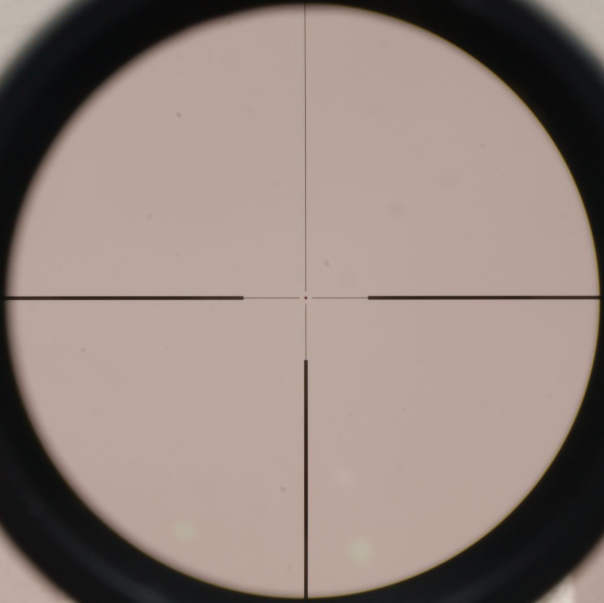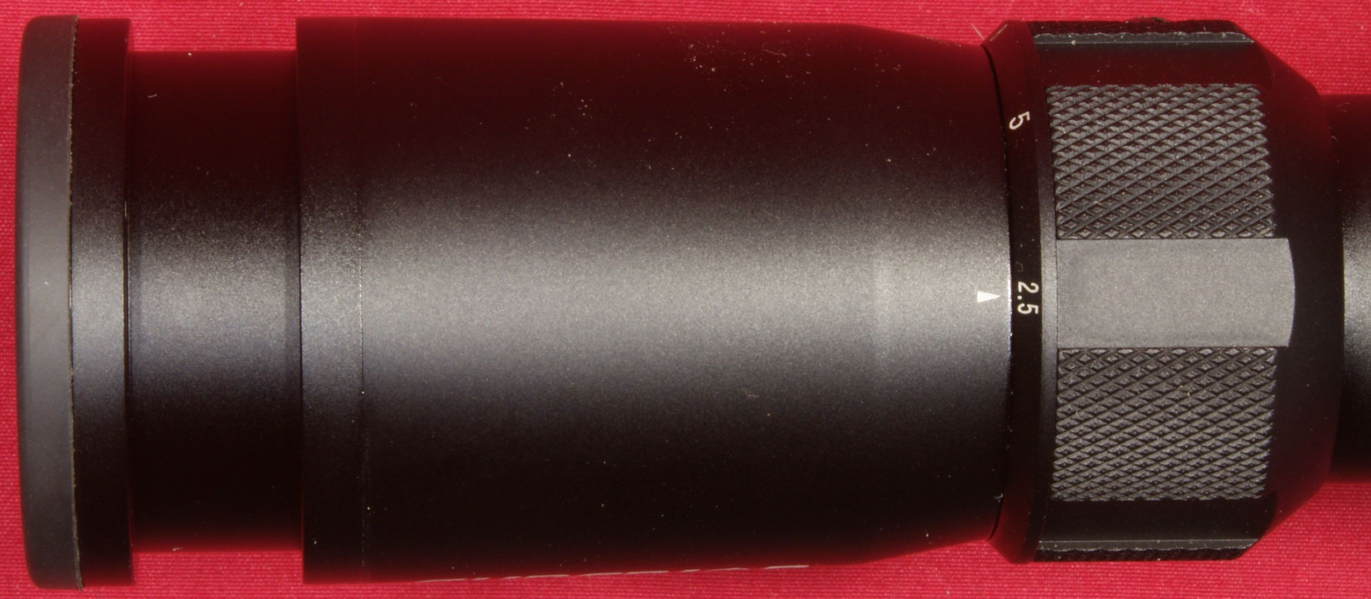 Figure 47 - 80 yards, 15x For range testing, I installed the Superior Riflescope on my Thompson/Center Dimension Rifle because I wanted to use this rifle during this deer season and I also feel the power range of the Superior scope is ideal for a variety of hunting situations. Additionally, this switch-barrel rifle allowed me the opportunity to shoot both .308 Win and .223 Rem ammunition. The .308 caliber gave me the opportunity to test some ammunition with some recoil energy (although still relatively low) and .223 caliber allowed me to get some economical range time looking through and using the scope. For those interested, the rifle configuration shown below is with the .308 barrel installed. I installed the riflescope using a set of Burris Signature Zee 30mm High height rings. You can see a review of these rings in medium height by going to this link. I feel the look of the scope mounted on this rifle makes an attractive system. I could have potentially used the medium rings, but I didn't want to push the scope too low and potentially become an issue when switching barrels on this rifle. The height rings you will need may depend on your rifle configuration and personal preferences. After installing the Superior riflescope on my rifle, I checked the eye relief at both 2.5x and 15x magnification powers. I used the two photos below to scale off the eyepiece diameter to get an eye relief calculation. The specifications state an eye relief of 100mm (3.94"). I found it to range from 3.76" at 2.5x to 3.89" at 15x and feel these are close enough to the manufacturer's specifications since there is some error in my method of measurement. Overall I think the scope has a long comfortable eye relief.