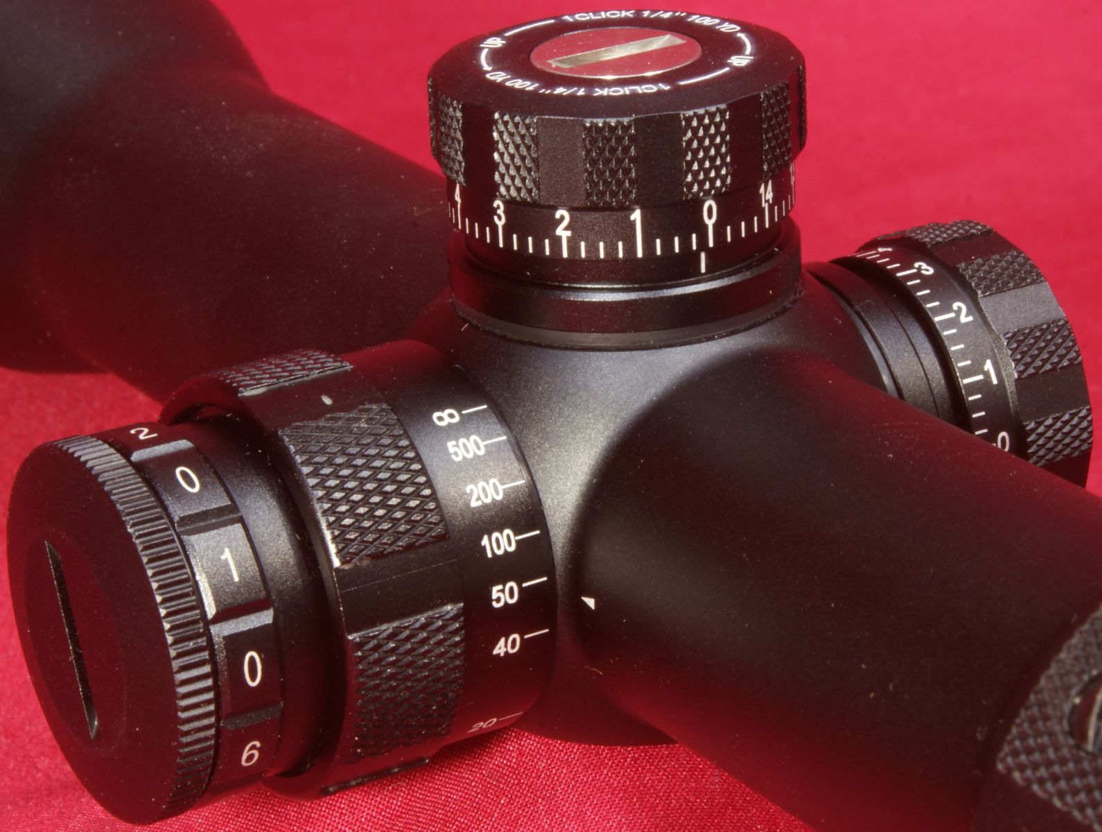 The scope arrived packaged as shown below. I lived overseas for nearly 4 years in South Korea and I have always been impressed at how old cardboard boxes could be quickly repurposed to make a custom box. This is clearly the case for this box. This detail doesn't really matter when related to the quality of the scope, but I thought it was worth emphasizing that this scope is a sample version and potentially any scope purchased may come directly from China (at least until they have a US distributor). Since the scope I received for review was a sample, so the box had no exterior markings. The scope was packaged inside the box as shown. There was nothing else in the box but the scope. I was told that the production models will come with an instruction manual, battery and lens caps. Months after I completed this review, Superior finalized their manual and were able to send me their Instruction Manual for this N-Series Riflescope. I always like to give my first impressions when I take a product out of the box and have my first close look. My impression on the Superior riflescope was very positive. The scope had some weight which I tend to associate with glass and metal, and it had an overall solid feel. The finish on the scope was perfect. The elevation and windage adjustment knobs had positive audible clicks. The power adjustment ring, fast focus eyepiece and parallax adjustment ring all had a smooth firm feel when making adjustments. After taking a quick look through the optics, I could see they were bright and clear. Again, I had a very positive impression. These photos below are very high resolution and will give you a good look at the exterior craftsmanship and clicking on them or any other photo in my reviews will typically bring up a high resolution photo. The scope measured 13.69 inches in length with the fast focus eyepiece adjusted all the way inside the housing and 14.13" with the eyepiece adjusted to the maximum length. The mounting length (distance between eyepiece and objective for attaching rings) measured about 5.6" and should give you a good footprint for mounting the scope. One feature I find interesting is the non-traditional taper on the eyepiece and objective areas. The eyepiece taper is very subtle, but the two sloped taper on the objective end really stands out and catches the eye. The riflescope weighed in at 1.43 pounds (22.9 ounces). This was 1.5 ounces over the specification weight, but nothing dramatic. This weight is comparable to other scopes of this zoom range and objective lens diameter. The more I studied the scope, the more I like the unique lines of this riflescope. For your average hunter or marksman, this scope having target style turrets and a parallax adjustment ring will be welcomed features. The scope body is machined from 6061-T6 aluminum alloy and comes with a black anodized finish. The objective end of the scope has a 50mm lens with a 57.5mm outside diameter. The lens surface looked perfect and there was clearly some type of coating that could be seen if you looked at the lens from a slight angle. Superior states that the lenses are fully multi coated to ensure the maximum possible light transmission. They state that this scope gives you 90% light transmission which is a claim similar to other high end riflescopes on the market. I don't have any way to accurately measure this claim but I can say the scope seemed very bright when compared to my Bushnell Elite and Zeiss Conquest scopes. The length of the objective end that tapers down to the tube diameter is about 119mm (4.69"). The tube diameter measured 30mm and the length of tube on the front end of the scope was about 62mm. The next key features on this riflescope are the controls located in the center (saddle) portion of the scope. This scope includes target style turret caps, a parallax adjustment and illumination control knob. The styling of the caps has a staggered smooth and knurled area which I found to be adequately textured and comfortable for making adjustments. The controls are marked with crisp white lettering and index marks. If you click on the photo below you will see that Superior has done a nice job with the quality of the markings. The elevation turret cap is marked with the direction to move the Point Of Impact (POI) of the bullet "UP" and is also marked with the amount of adjustment "1 CLICK 1/4" 100 YD". Note that the turret caps are marked in 1/4 inch click increments and the specifications state 1/4 MOA (Minutes of Arc or Angle). One MOA (four clicks) is equal to 1.047" of adjustment at 100 yards not 1.00". This is a very subtle difference, but if you are shooting long distances and trying to squeeze the maximum accuracy out of your setup, this difference is something you may want to consider. One revolution of the elevation or windage turret caps will shift the POI by 15 MOA. There were 73 MOA of total travel on the elevation adjustment knob, so I feel the 60 MOA stated in the specifications is a good number to consider for an actual adjustment range. I reset the zero on the elevation turret cap once I got it back to mid travel. This new setting was very close to the position of the original setting so it appears the scope came adjusted to mid travel. The windage turret cap is identical to the elevation cap except this cap marked showing the direction to rotate the cap to the "R" right, to move the bullet POI. This turret cap had about 72.5 MOA of total travel for adjustment and also seemed to have come pre-centered within the travel range. The windage adjustment range is also 60 MOA and I feel this is also correct. You can remove the turret cap by holding the cap and turning the stainless steel screw using a coin. The cap is made from aluminum and has inner teeth that match up with the brass (I think) turret. No O-rings were visible when removing the cap, so the water proof sealing must occur on the turret body. I was able to get confirmation from the manufacturer that the O