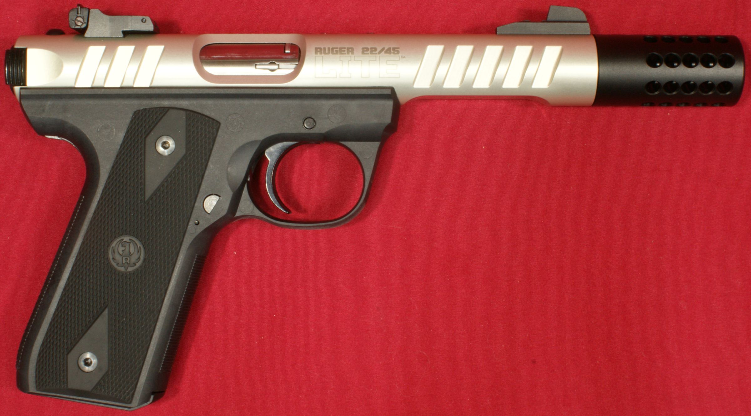 Bottom Line: I love the look of the compensator on the Ruger 22/45 Lite Pistol and the compensator along with the Bushnell sight makes for an extremely attractive shooting platform. Separately I shot some groups with and without the compensator and couldn't see any noticeable change in group size. The aluminum compensator adds about 1 once to the weight of the pistol and I feel the looks are well worth the weight. I can't say that I could tell any significant recoil difference when shooting this rimfire pistol with the compensator, so from my view the addition is primarily from a looks perspective. For a price of about $38, it is well worth it. Or If you would like to be notified about future Gunsumer Reports reviews via Facebook, make sure "You Like This" by clicking the Facebook "Like" button at the bottom or top of this page. If it already says "You Like This" beside the button, clicking it again will uncheck the "Like" status and you will not be notified.
