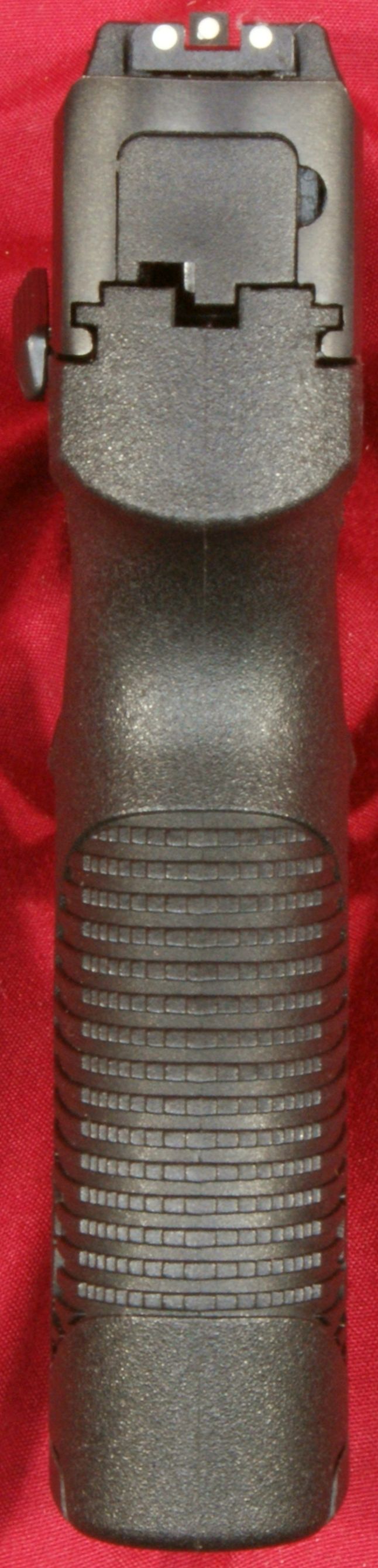 First Impressions I arrived at the store about 5 minutes after it opened on the day starting their Black Friday sale and the store was packed. My wife and I were probably about 30th in line at the gun counter and with other people filing in after us, so I didn't spend much time examining the pistol then. I did look at it enough to have an impression positive enough to make the purchase, but it wasn't until I got home that I really had the time to look it over thoroughly and I can say I was very impressed. The pistol felt good, build quality looked good, overall I liked the sight system (although the rear notch doesn't seem deep enough) and the trigger pull felt decent. In my mind I was very pleased with the value I got with my purchase. For more detailed photos and commentary, make sure you check out the other parts of this review and feel free to leave comments below. The following links are provided to help you see other parts of this review.