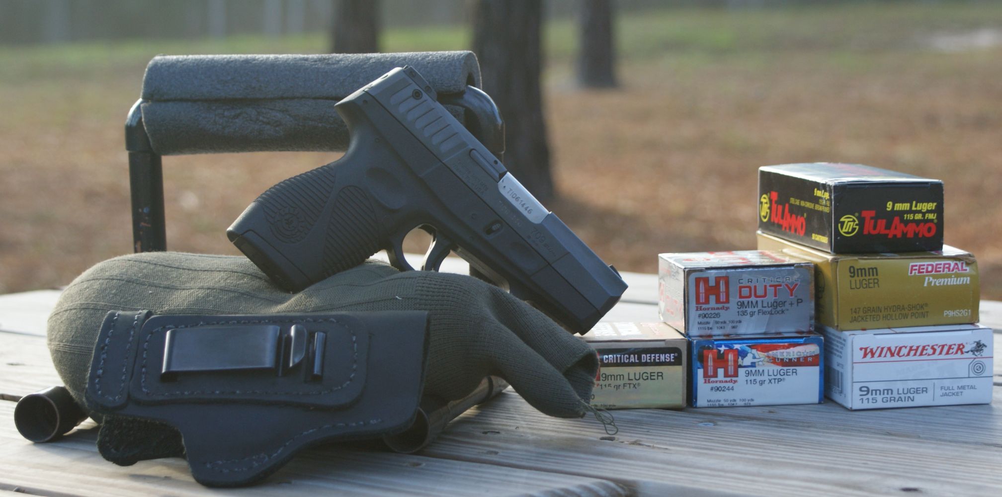 Taurus 709 Slim Pistol Review In this part of my review, I range test the Taurus 709 Slim 9mm single stack compact pistol. I selected a variety of ammunition to use during my tests and the ammunition varied from some value practiced steel cased ammo, to premium self defense ammo and some +P ammo. The photo below shows some of the brands of ammunition used, yet there was also some other brass cased FMJs used on the steel target range.