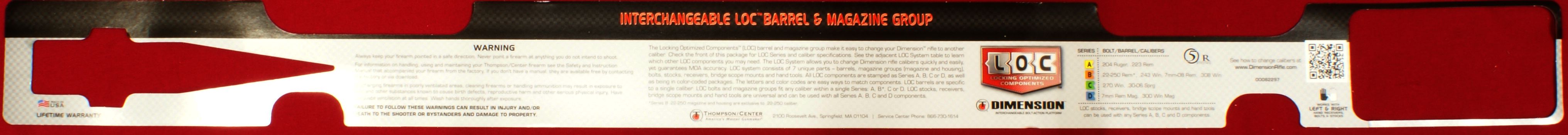 Complete Rifle The .308 Win Dimension Rifle came boxed as shown below. The end of the box had a sticker with all the key information about this particular rifle such as: