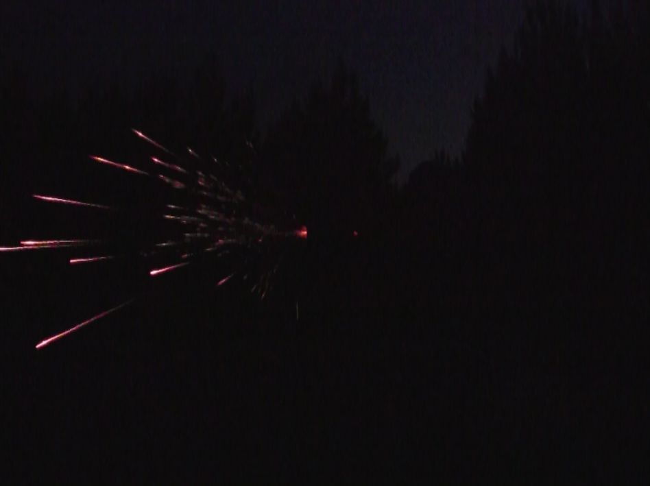 Device This next photo shows the flash for a Short Barrel Rifle (SBR) with an 11.5" barrel and no muzzle device. You can see that you don't get a full powder burn while the bullet is in the barrel. The flash signature was actually very impressive. After seeing this flash signature for a 11.5" barrel, I was curious to see how well the two muzzle devices would tame this flash. Figure 18 - 11.5" Barrel with No Muzzle Device Overall I was impressed with the A2, but I did get one shot out of five that produced the clearly larger flash signature below. Figure 19 - 11.5" Barrel with A2 Flash Suppressor The FOSSA-556 produced what I believe were overall reduced flash signatures than the A2. Honestly, I was amazed at how well White Sound device was able to reduce the fire ball into a burst of sparks. Keep in mind you are looking at the largest signature of the five shots recorded. The sparks you are seeing are what is referred to as 'primary' light emission and comes from hot carbon and incompletely burned powder which is why it looks like little comets or sparks. Unfortunately, they can't be extinguished by a muzzle device. Figure 20 - 11.5" Barrel with White Sound Defense FOSSA-556 Muzzle
